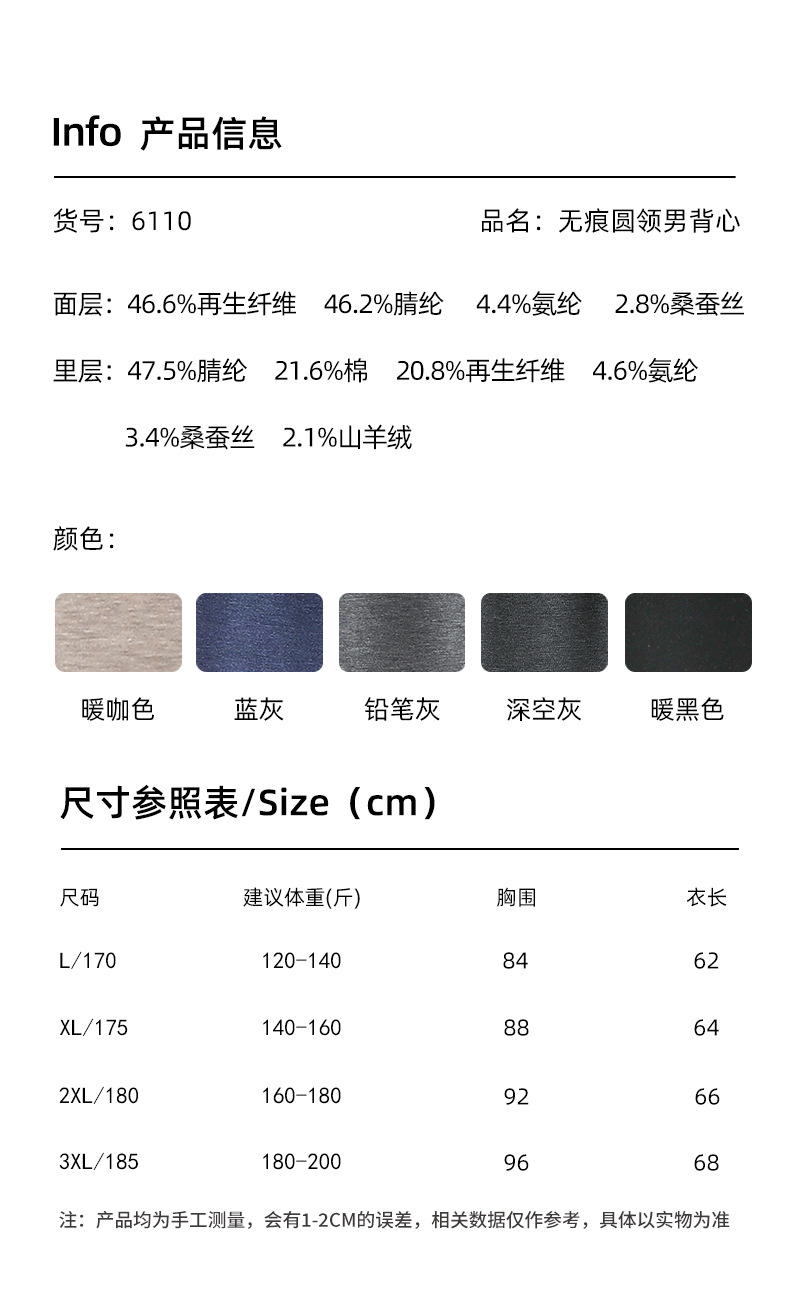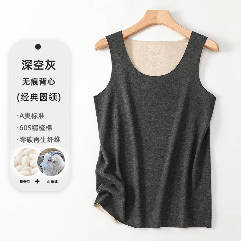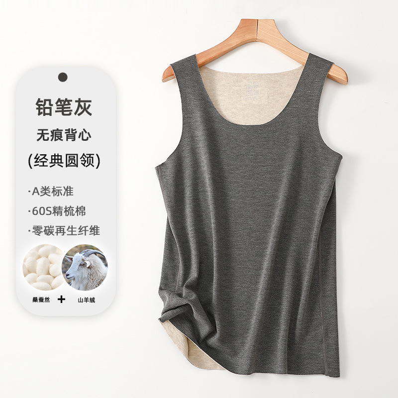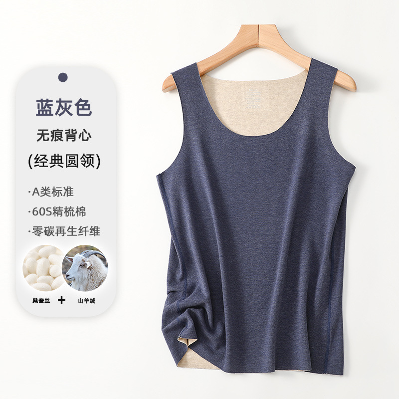 A급 가을 겨울 보온 조끼 남성용 무봉제 실크 항균 A급 라운드넥 이너웨어 발열 남성용 캐시미어 조끼