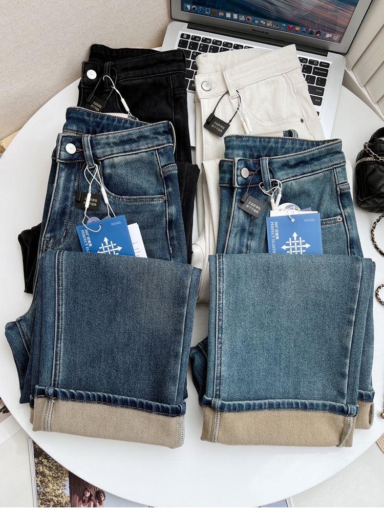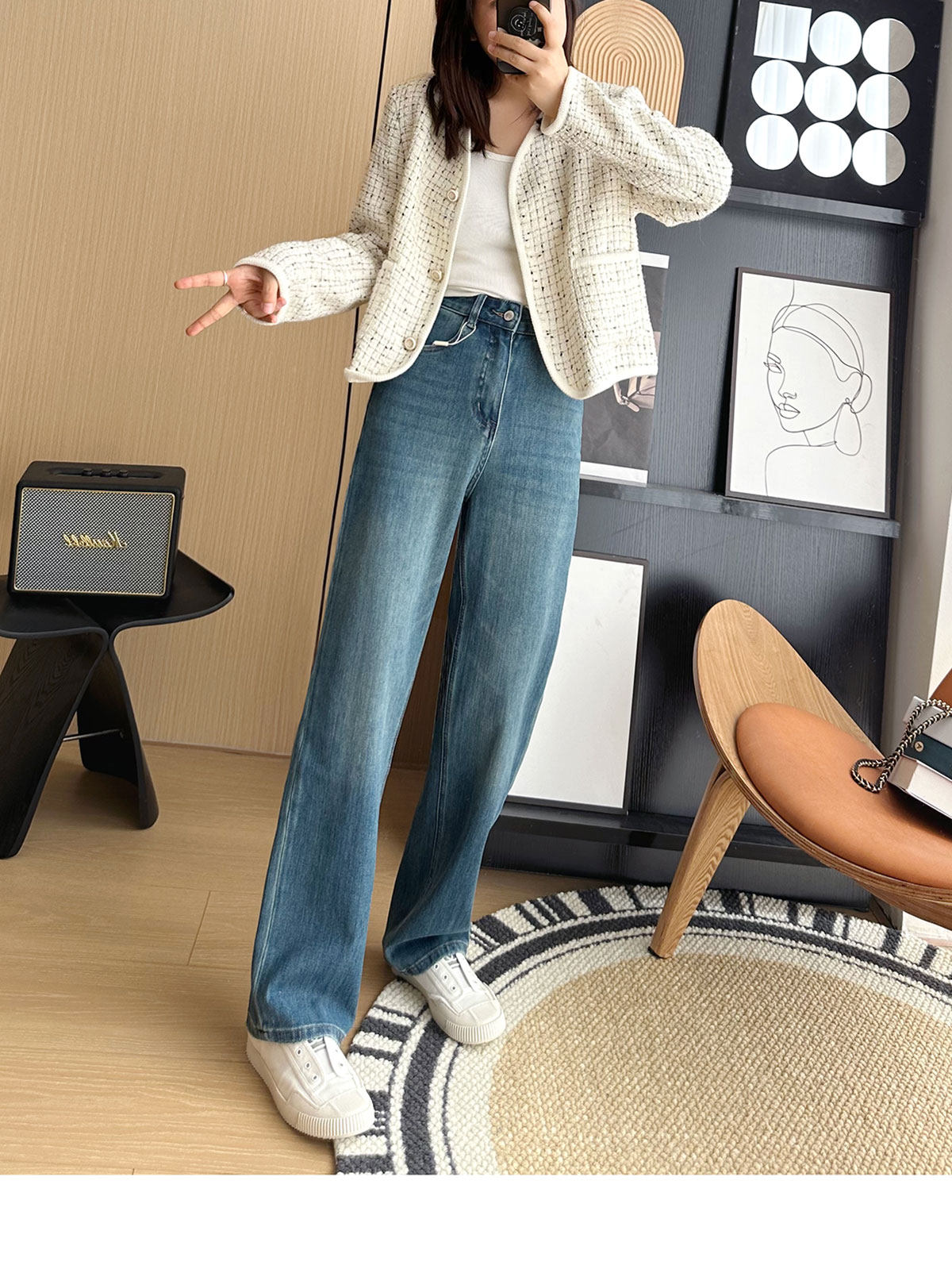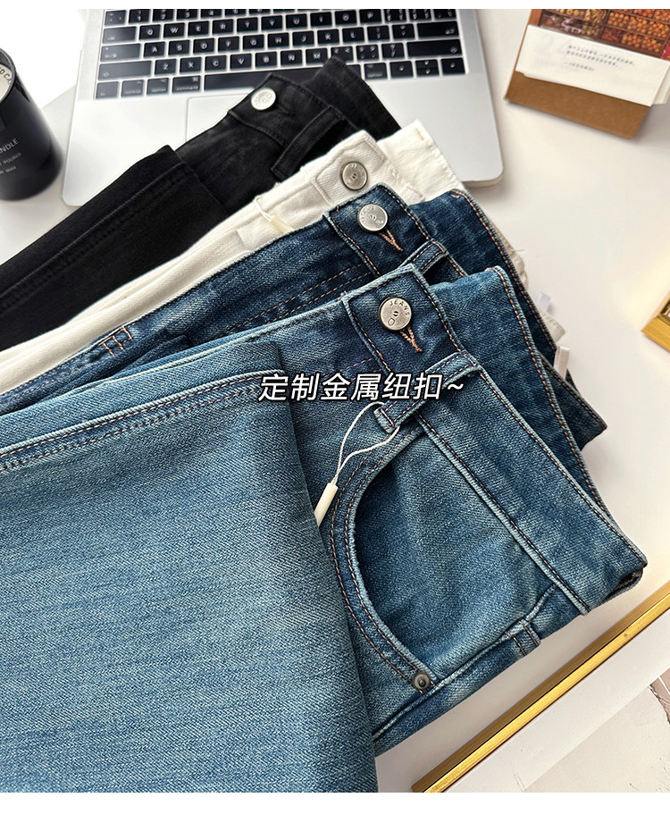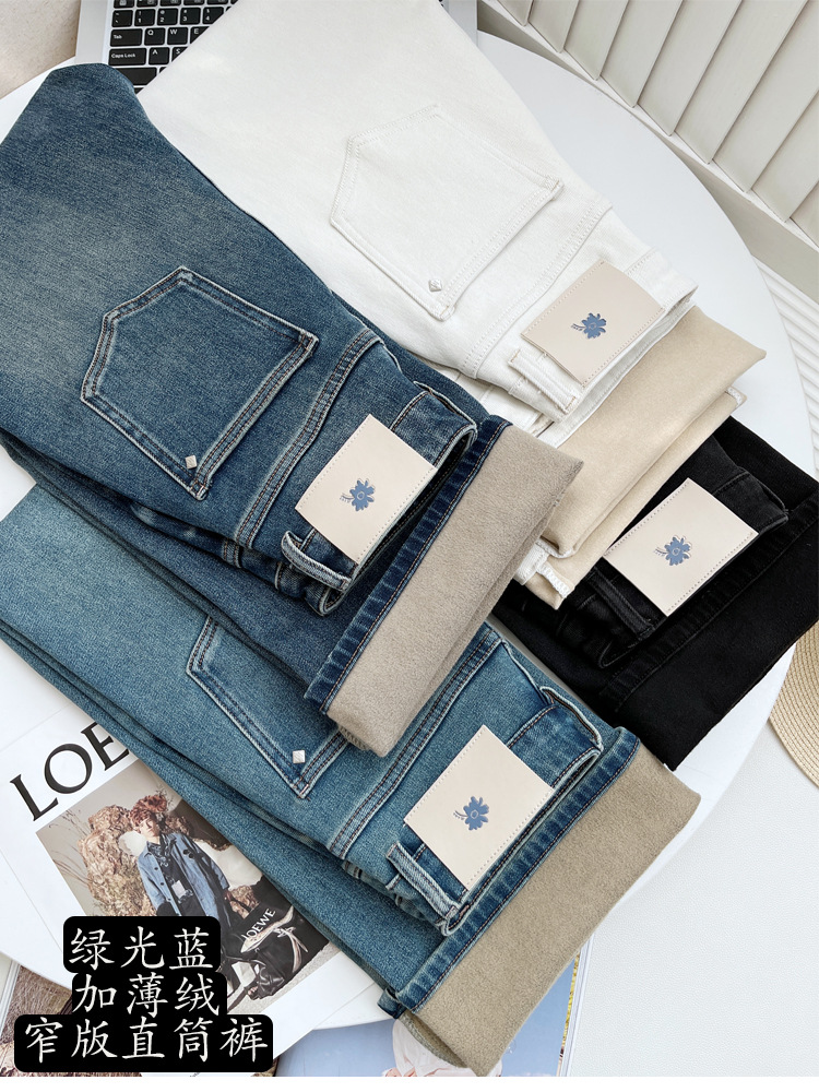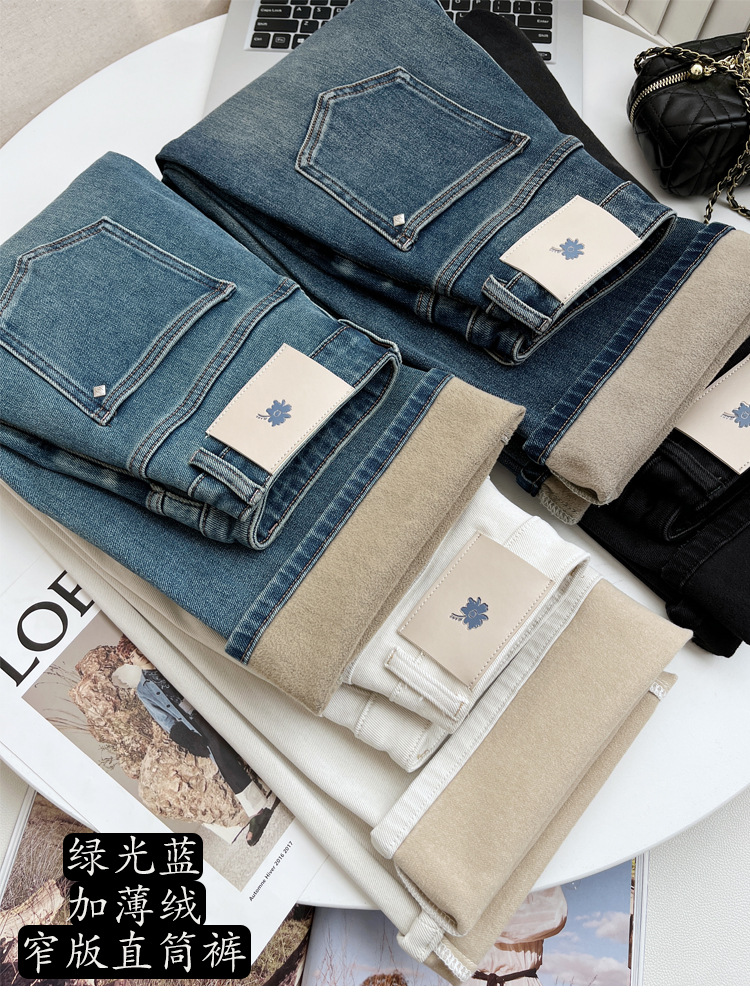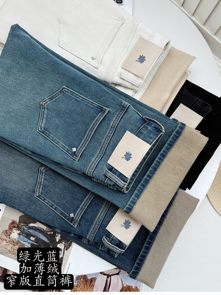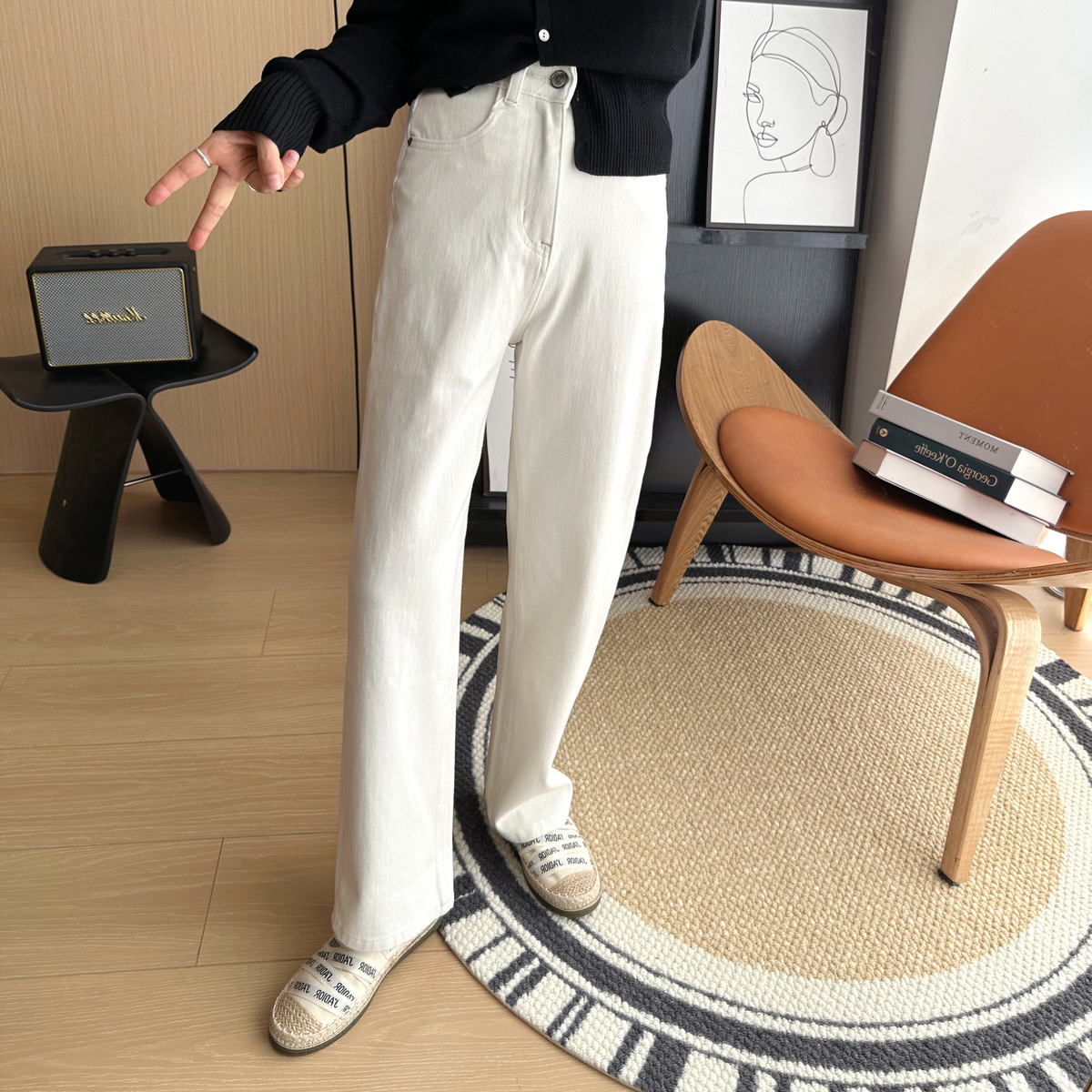 가게에 시리즈에 눈을 감았 어! 봄과 가을 4 면 탄성 청바지 여성의 좁은 버전 슬리밍 스트레이트 레그 스트레이트 레그 와이드 레그 팬츠스토어 가기