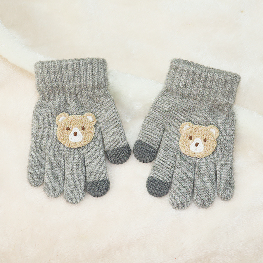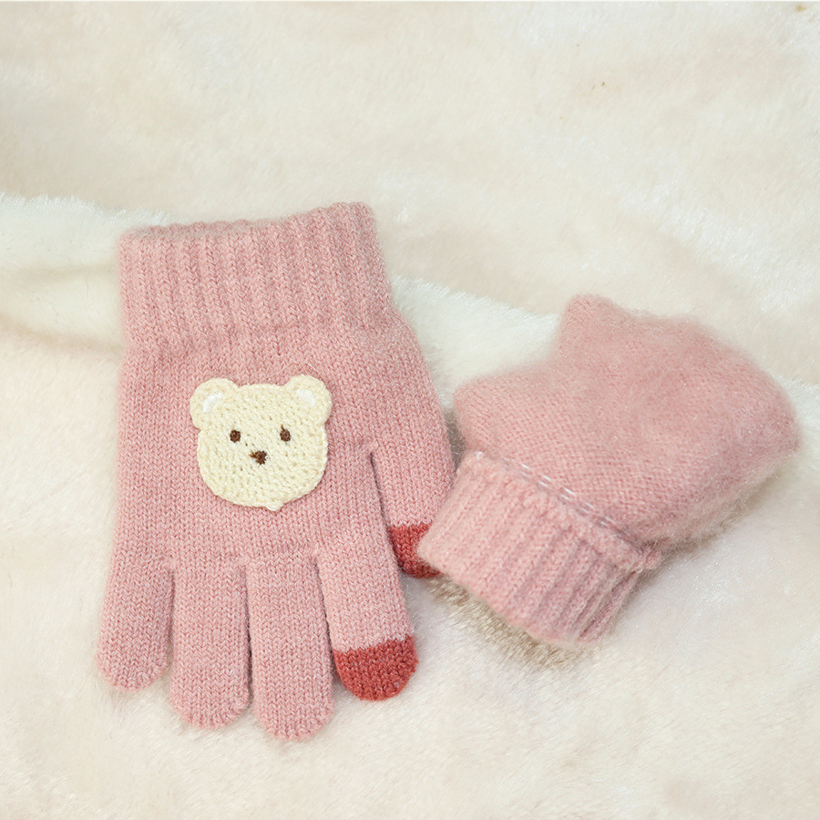 어린이 장갑 겨울 1-3 세 소년 소녀 귀여운 곰 따뜻한 니트 손가락 겨울 다섯 손가락 장갑