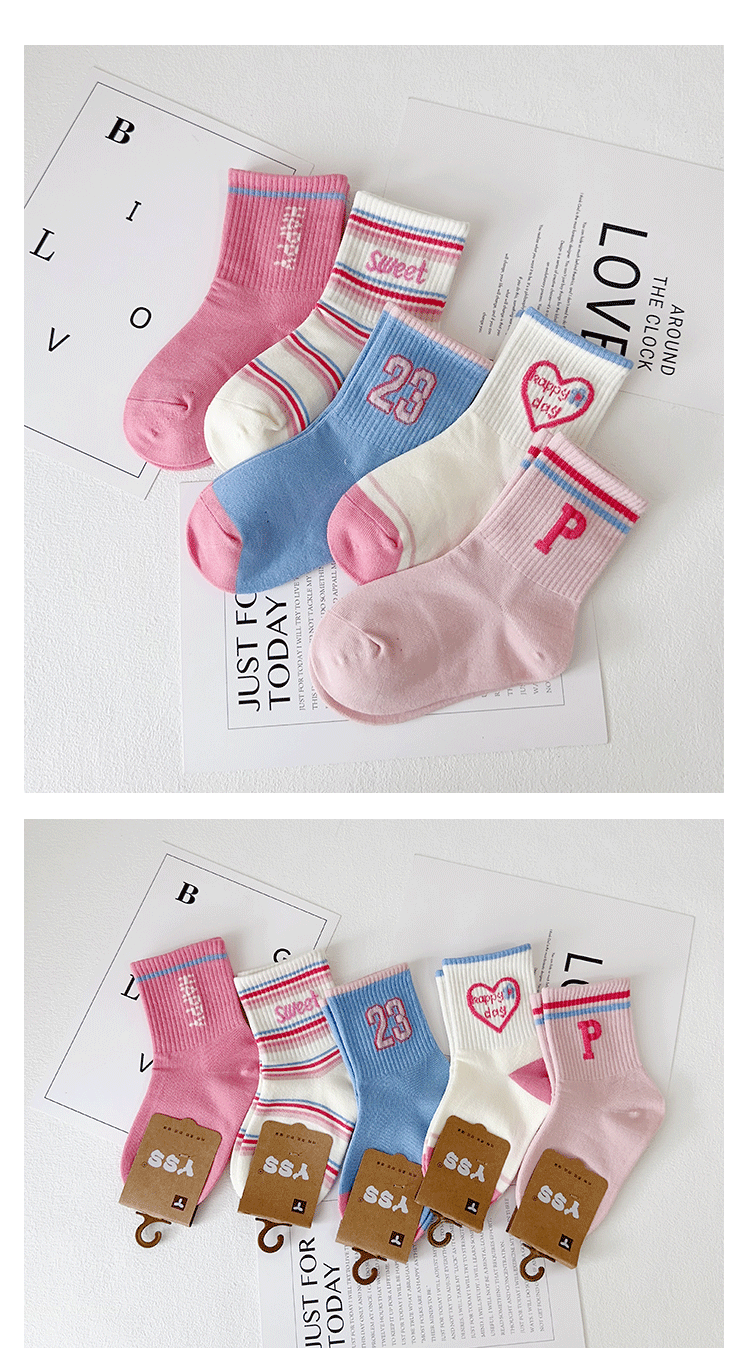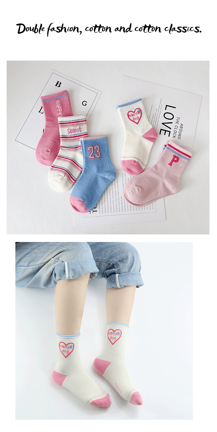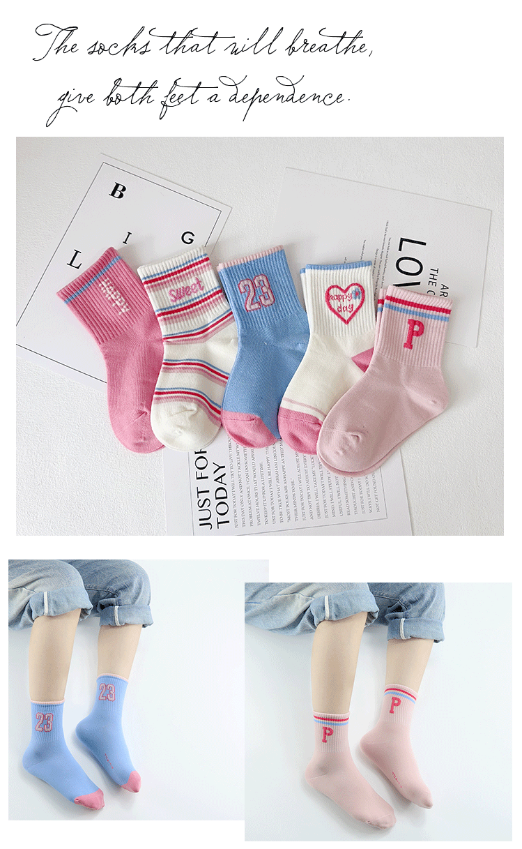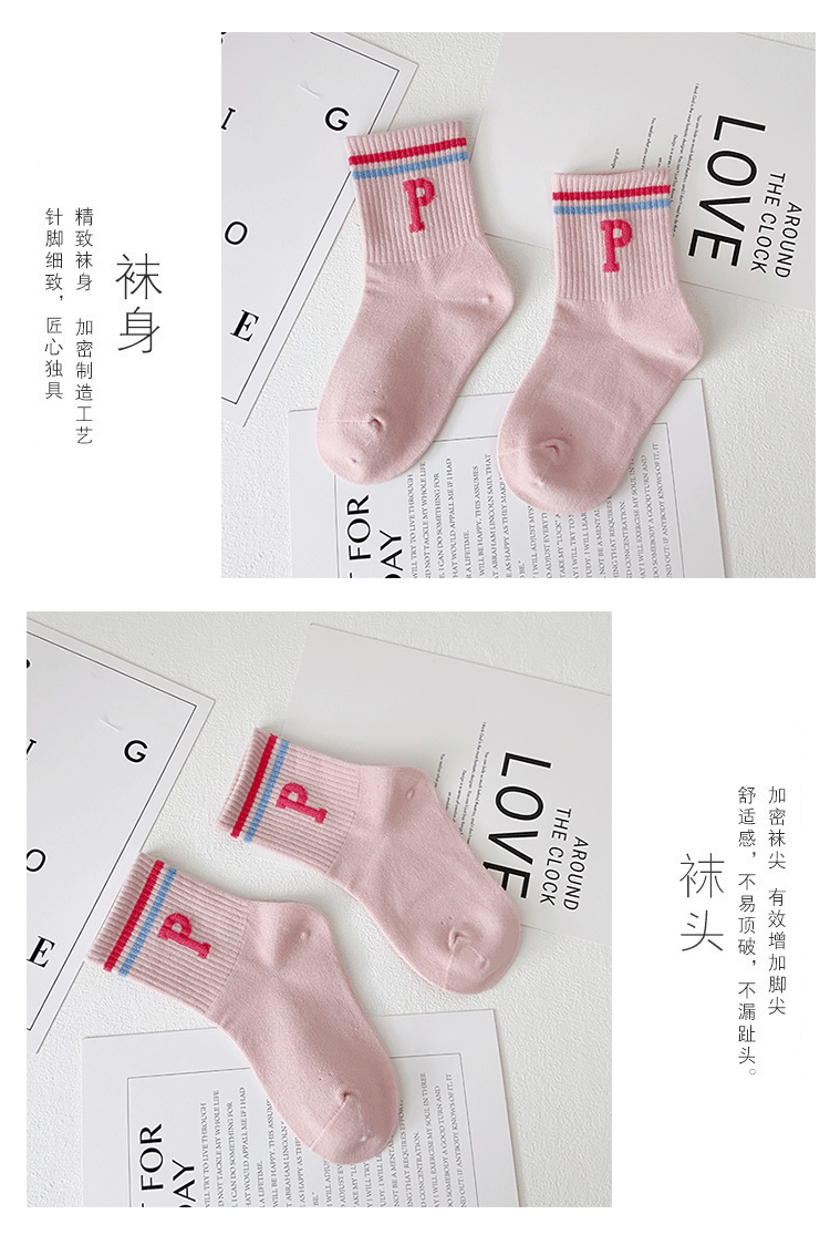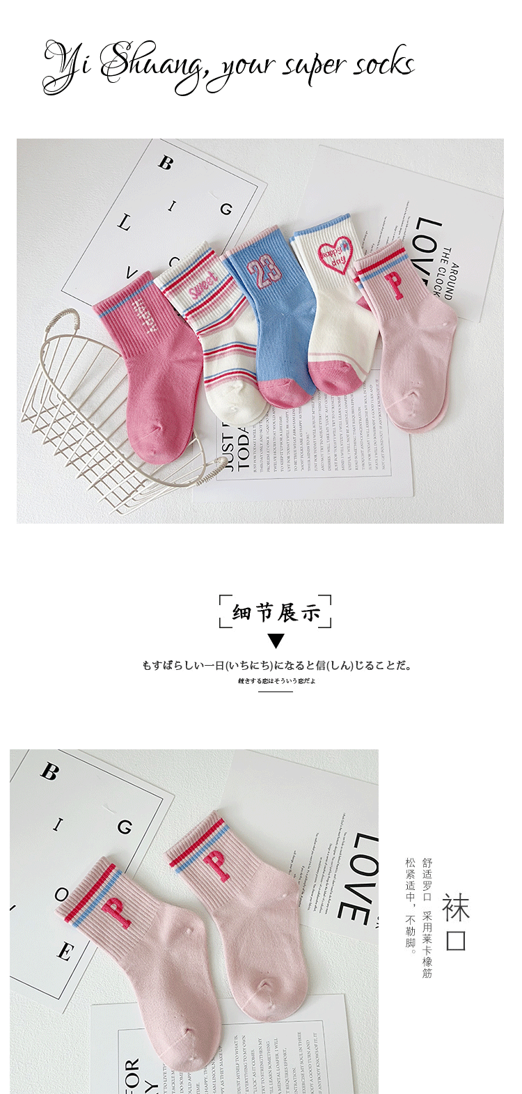 Yi Pair 어린이 양말 가을과 겨울 새로운 유행 브랜드 편지 중간 튜브 양말 빗 코튼 한국식 소녀 스포츠 양말 유행 양말스토어 가기