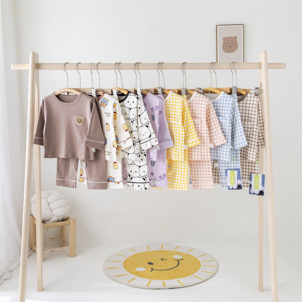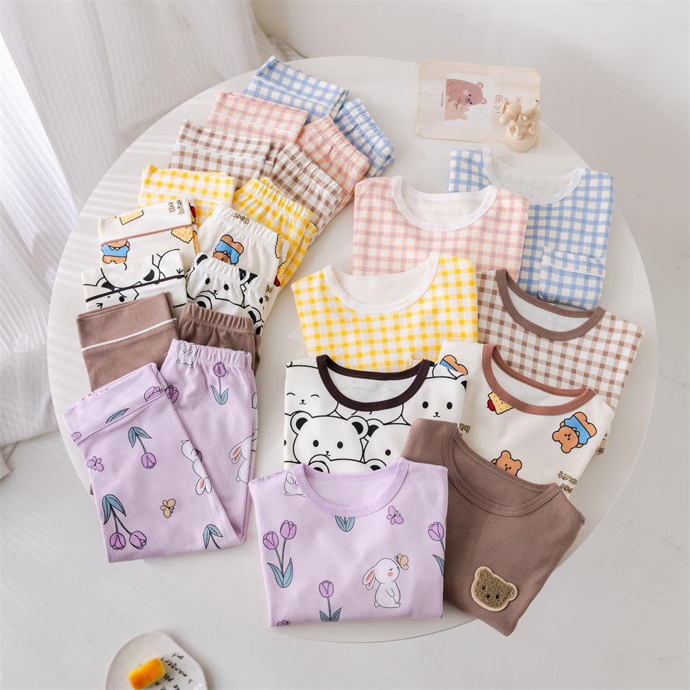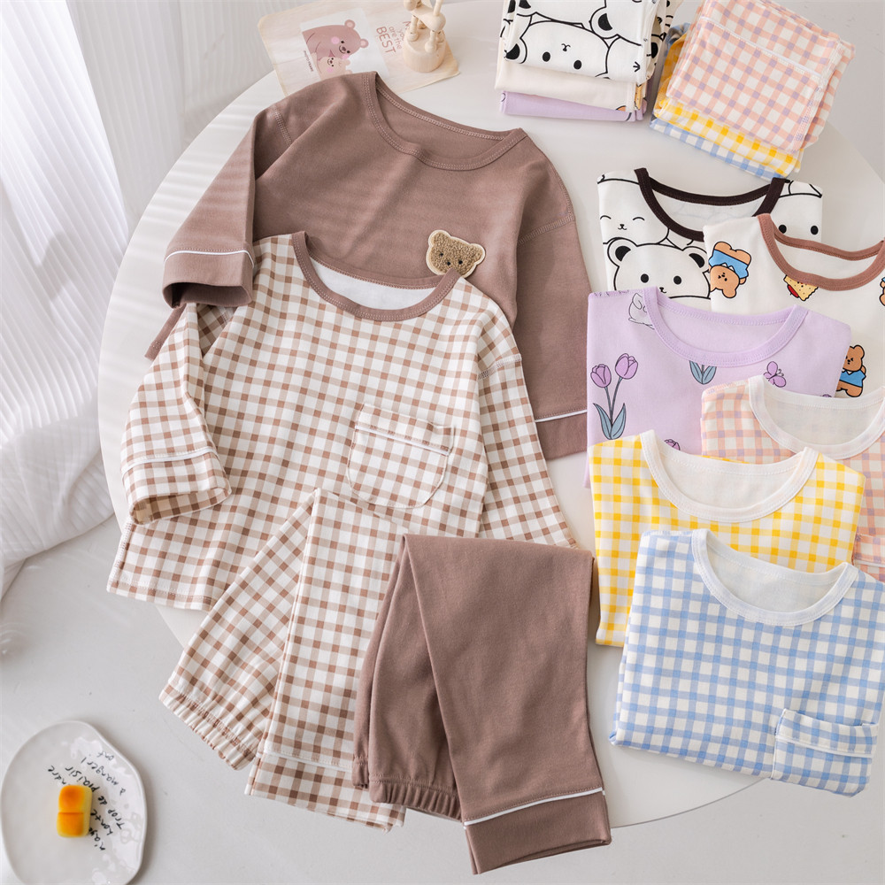 2024 새로운 어린이 잠옷 소년 봄과 가을 긴 소매 면 아기 소녀 큰 어린이 집 옷 홈 옷스토어 가기