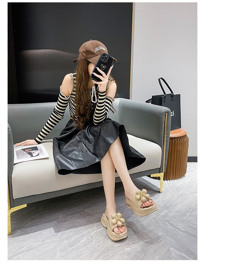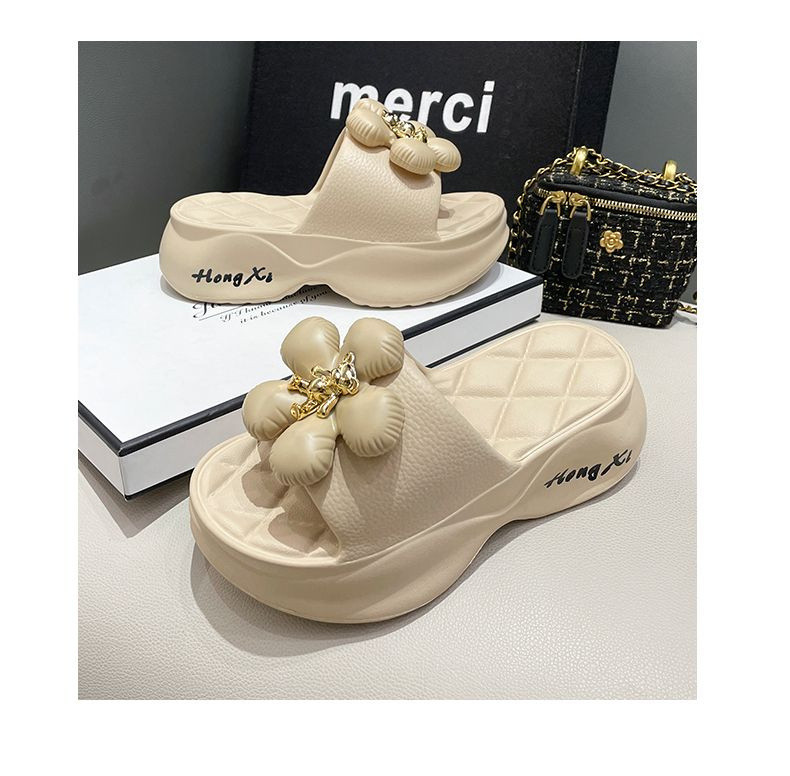 2024 하이 힐 슬리퍼 올 매치 홈 여름 새로운 스타일 의상 웨스턴 스타일 두꺼운 밑바닥 미끄럼 탈취제 귀여운 샌들과 슬리퍼
