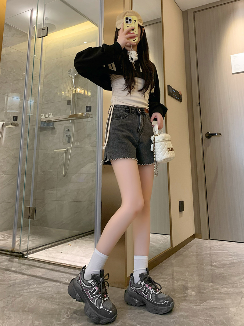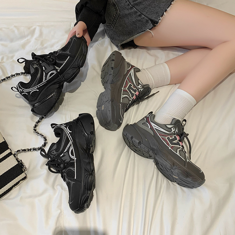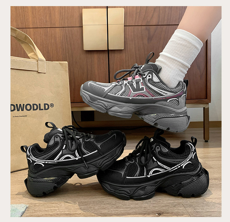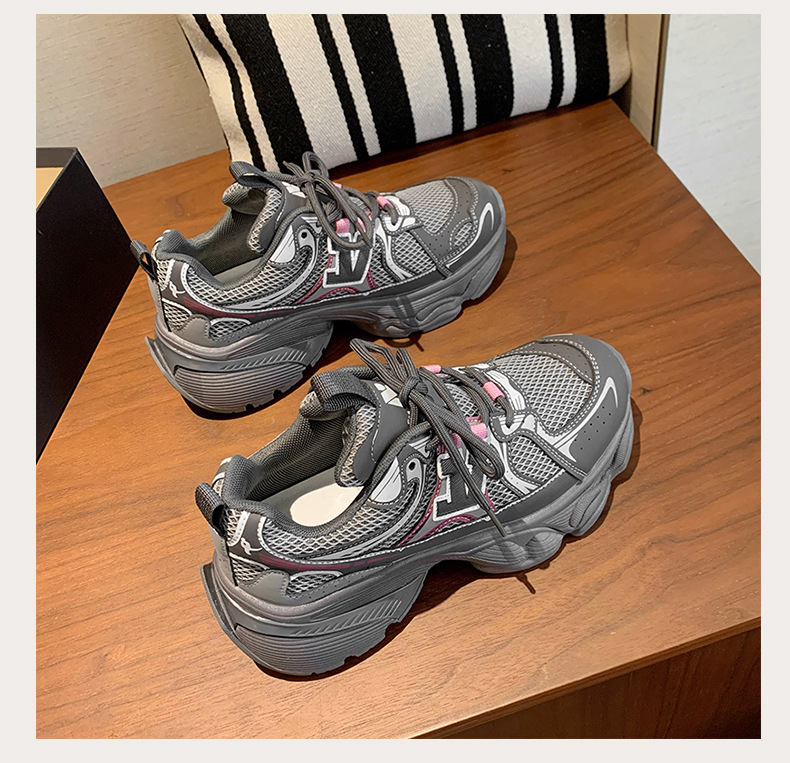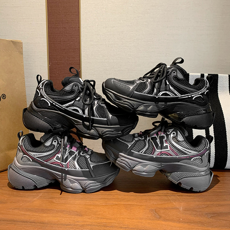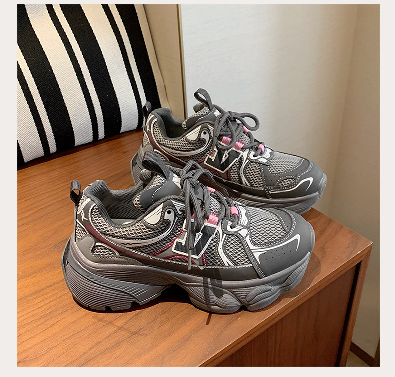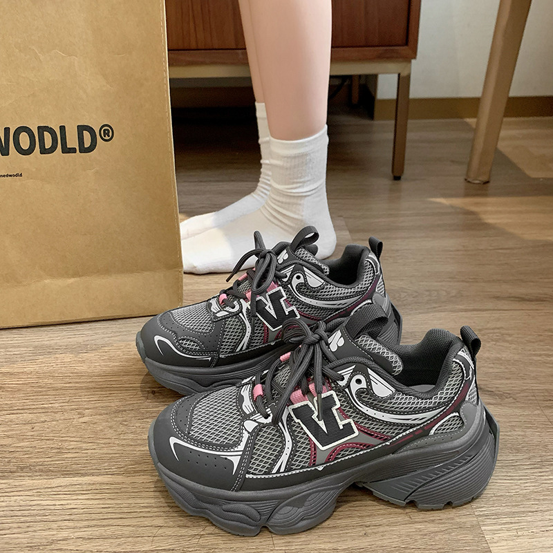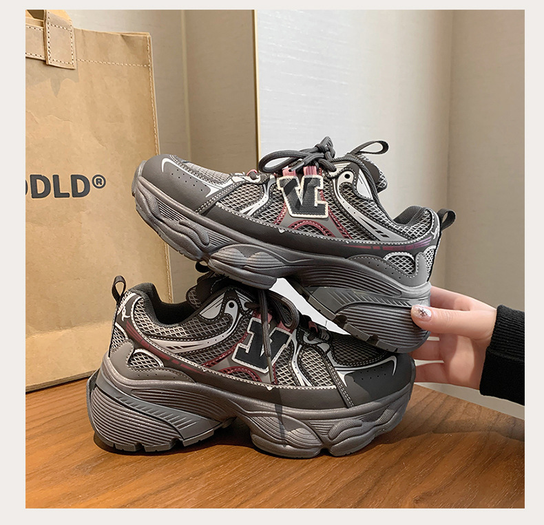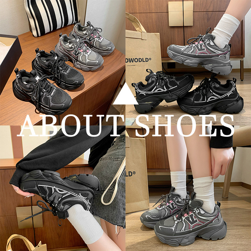 2024 새로운 가죽 컬러 매칭 프론트 레이스 업 Ins 스타일 두꺼운 밑창 토르 신발 스포츠 캐주얼 스타일 편안한 패션 올 매치스토어 가기
