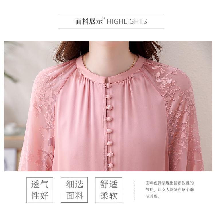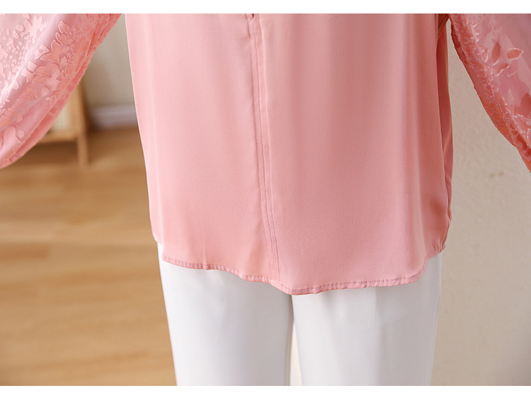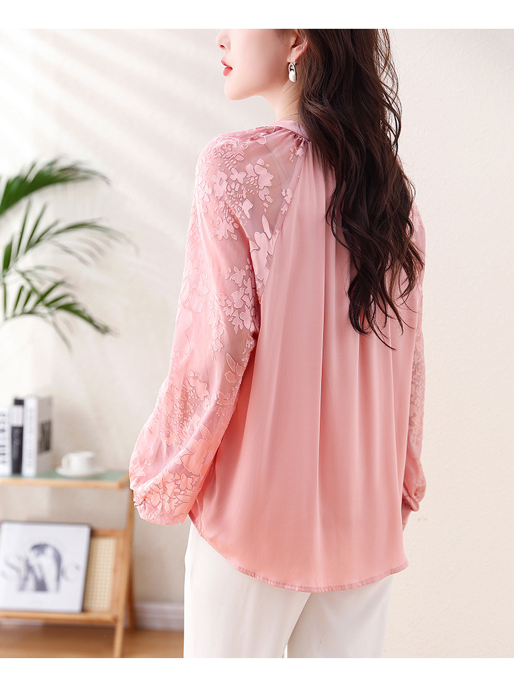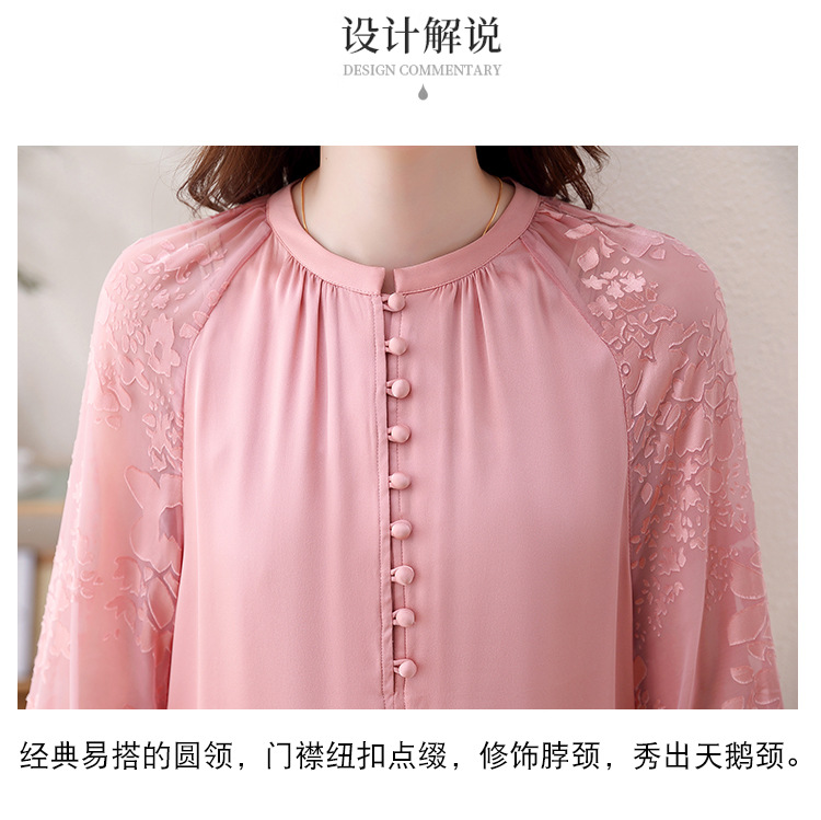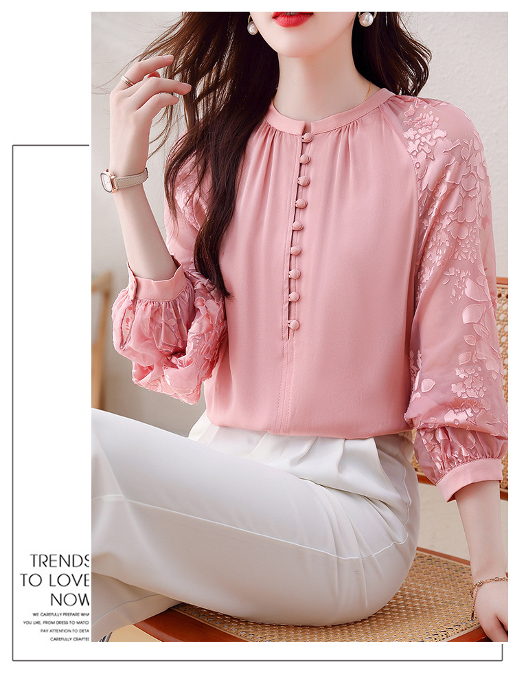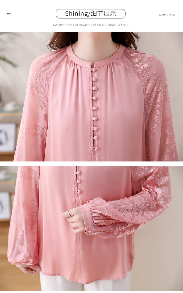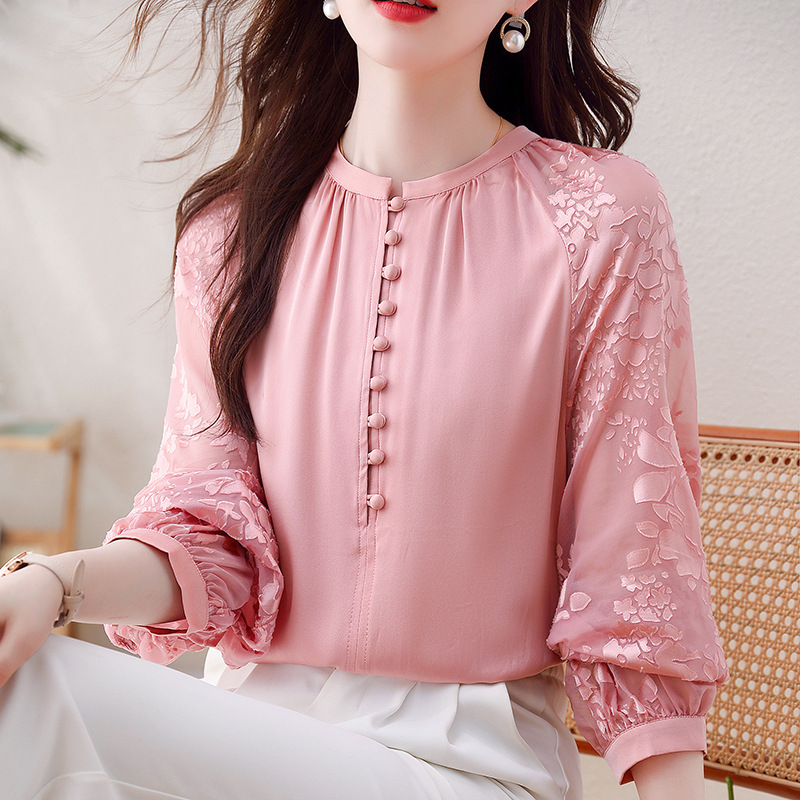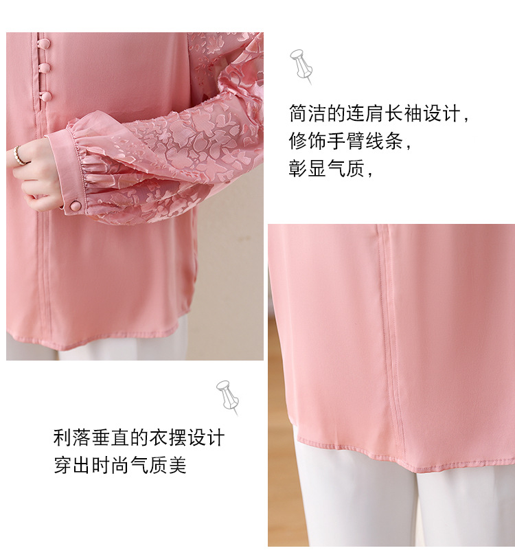 2024 년 가을 뉴 헤비 실크 라이트 럭셔리 통기성 새틴 자카드 셔츠 최고 여성 싱글 브레스트 쉬폰 셔츠