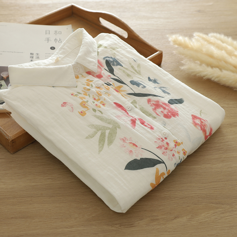 더블 레이어 코튼 원사 긴 소매 셔츠 여성의 느슨한 새로운 인쇄 다양한 예술적인면 소프트 셔츠 도매