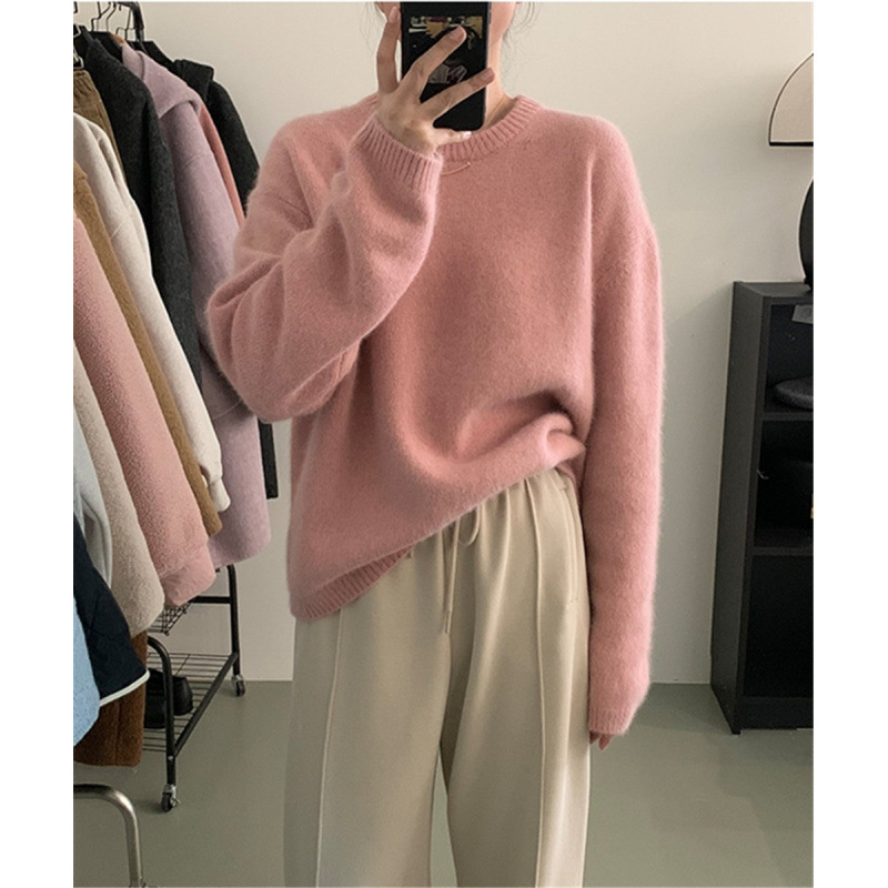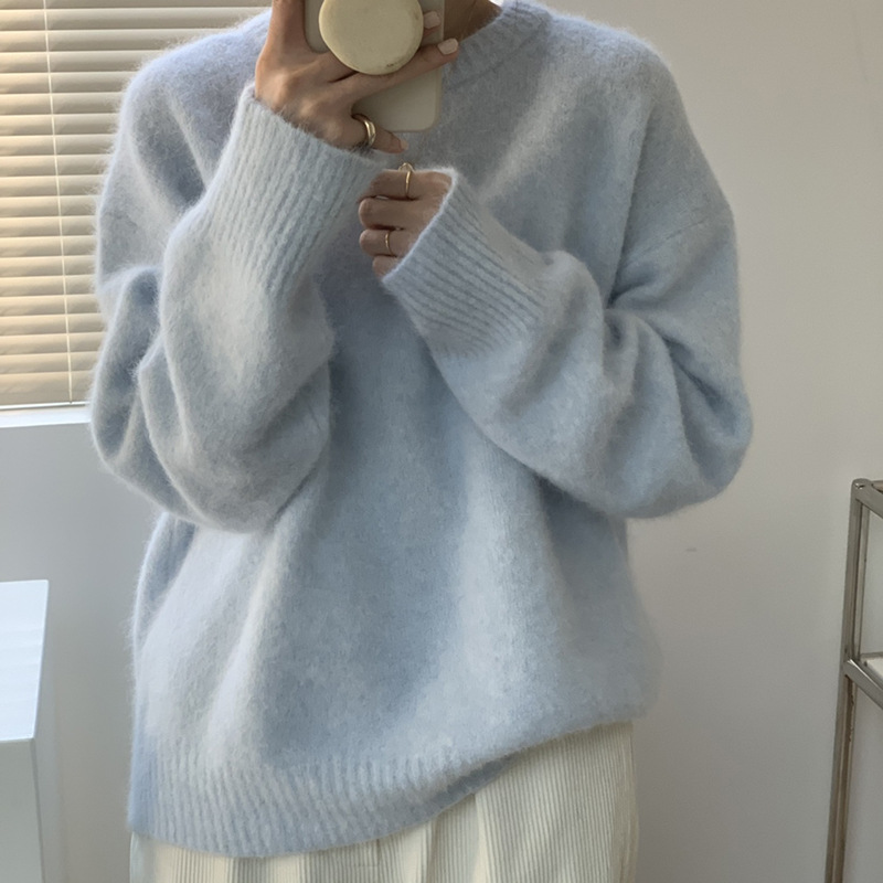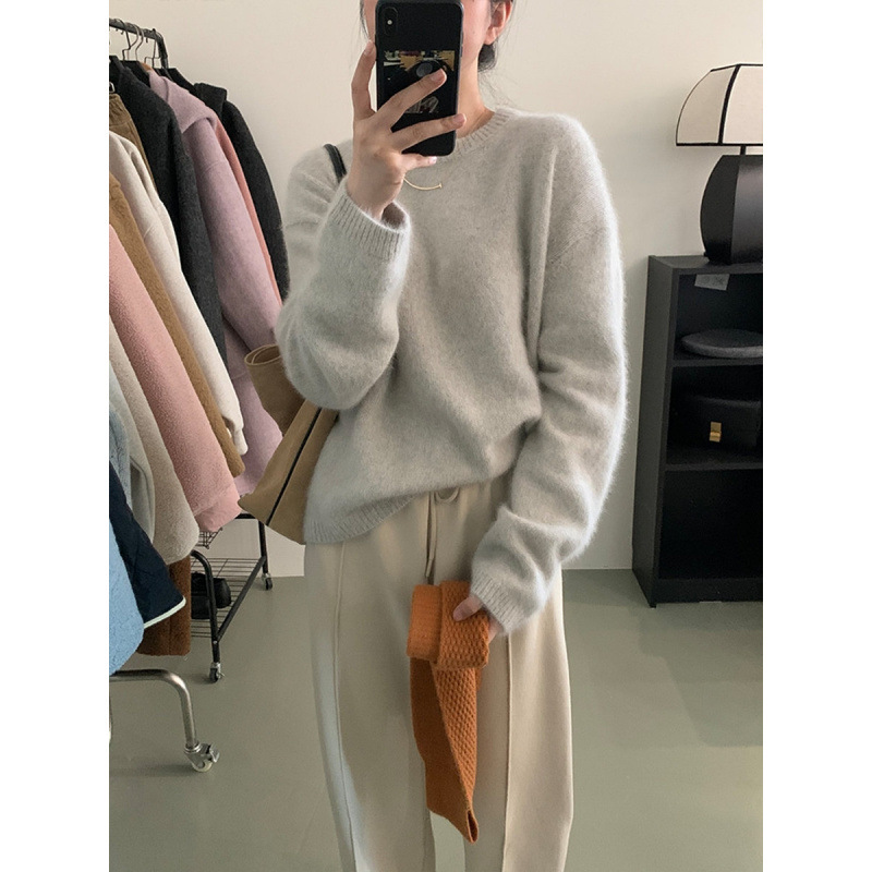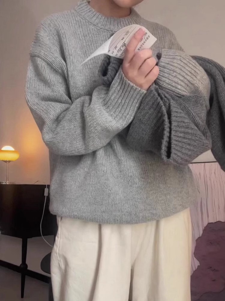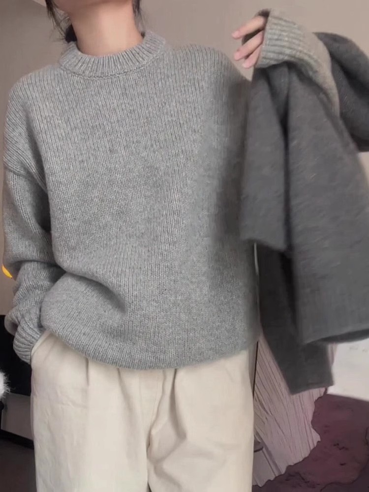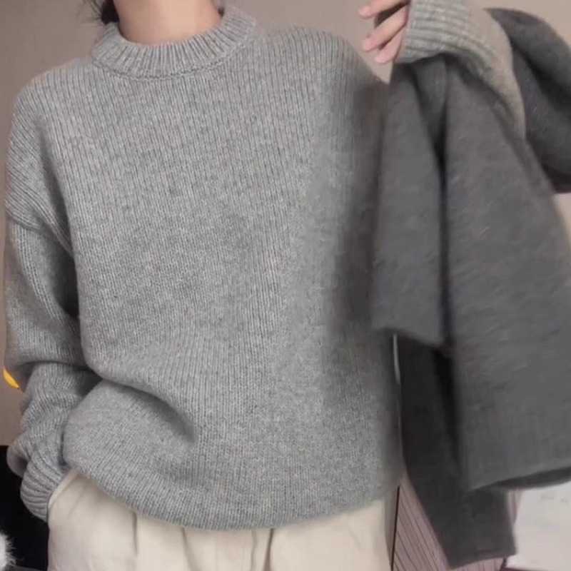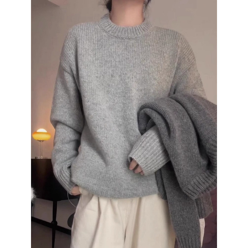 한국 드라마 여성, 부드러운 스타일 회색 스웨터 가을과 겨울 새 우유 푸푸 소프트 왁스 게으른 나이 줄이기 탑 착용스토어 가기