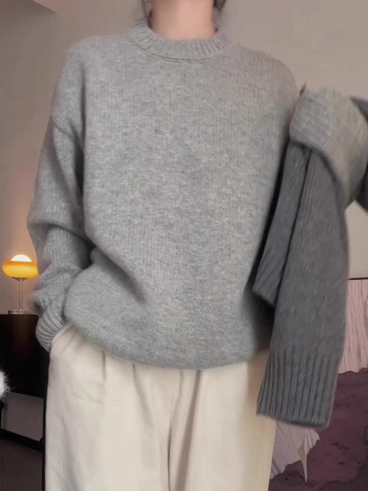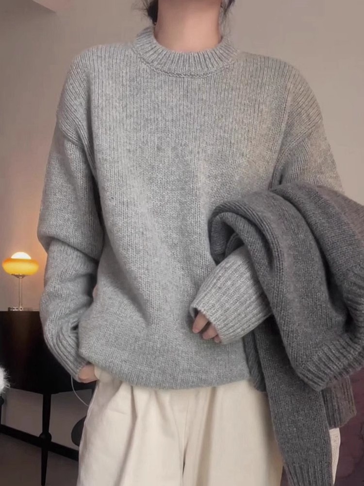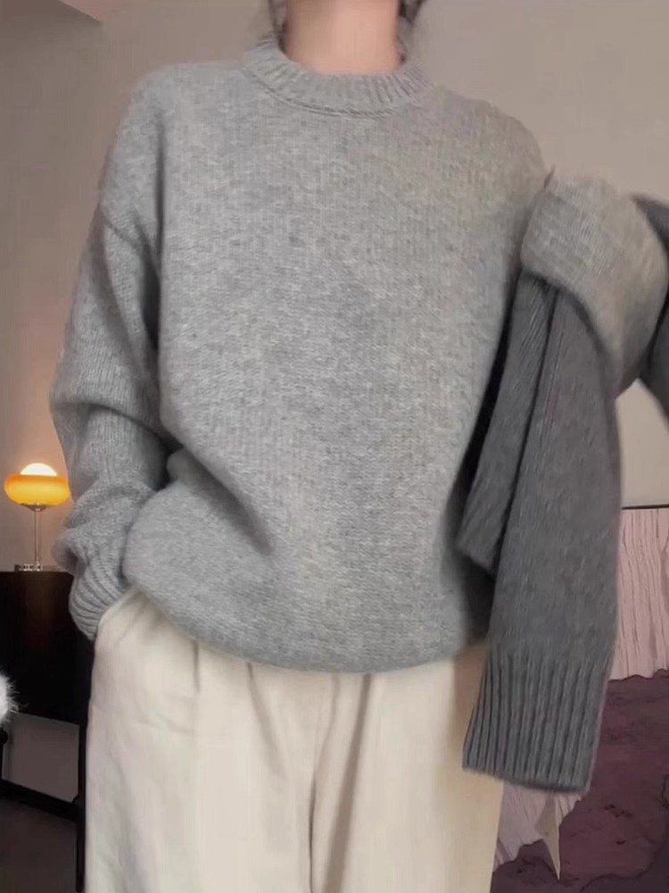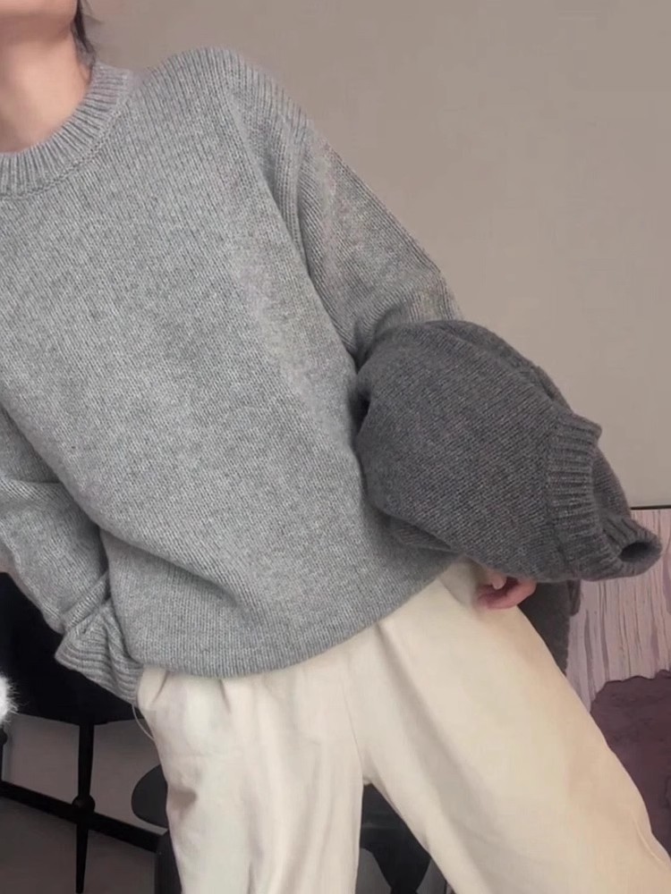 한국 드라마 여성, 부드러운 스타일 회색 스웨터 가을과 겨울 새 우유 푸푸 소프트 왁스 게으른 나이 줄이기 탑 착용
