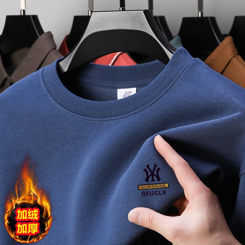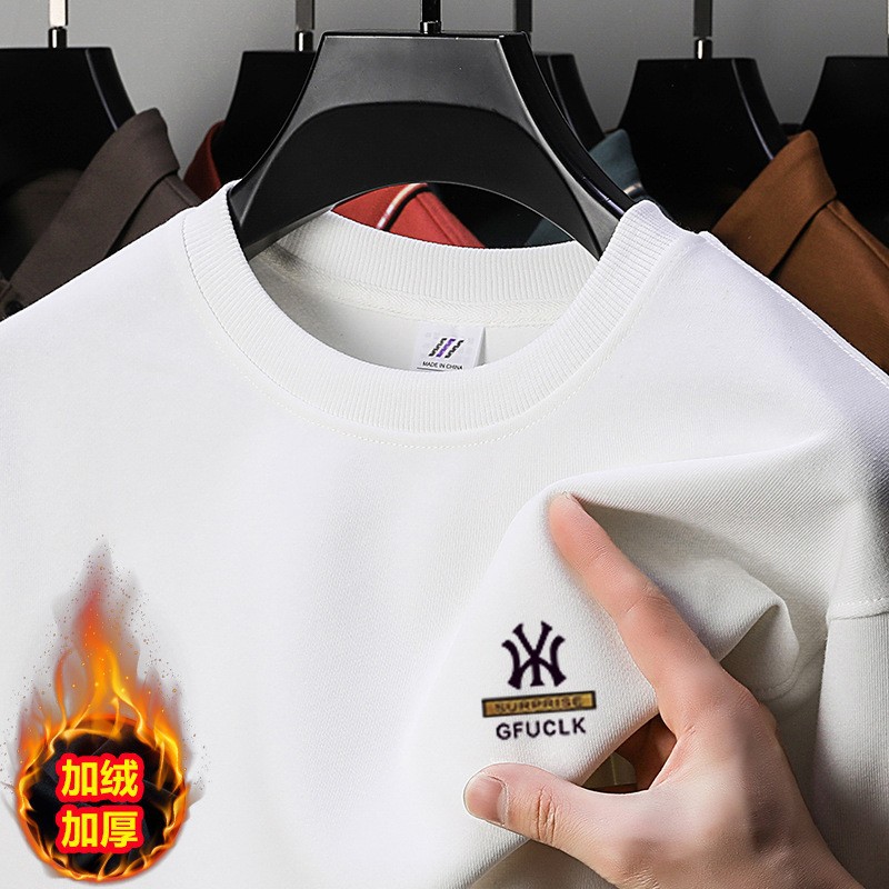 남성용 380g 헤비급 순수 코튼 스웨트 셔츠, 트렌디 브랜드, 2025 봄, 가을 청소년 한국 스타일 라운드 넥 긴팔 티셔츠, 남성용 하의 셔츠스토어 가기
