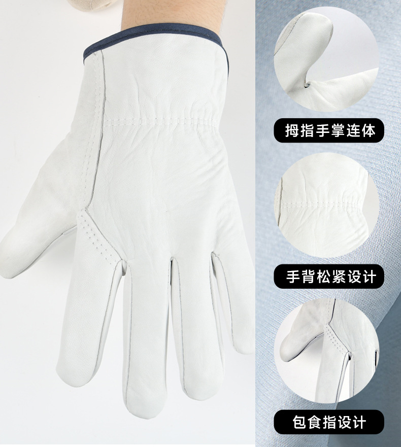 흰색 양가죽 크로스 핑거 드라이버 장갑 아르곤 아크 용접 보호 단열 장갑 노동 보호 내마모성 미끄럼 방지 핸들 장갑스토어 가기
