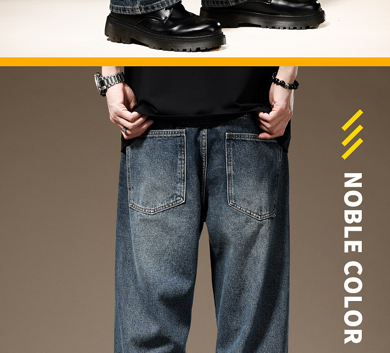 아메리칸 스타일 레트로 블루 청바지 남성용 트렌디 브랜드 루즈 스트레이트 플러스 사이즈 가을 캐주얼 뉴 와이드 레그 롱 바지스토어 가기