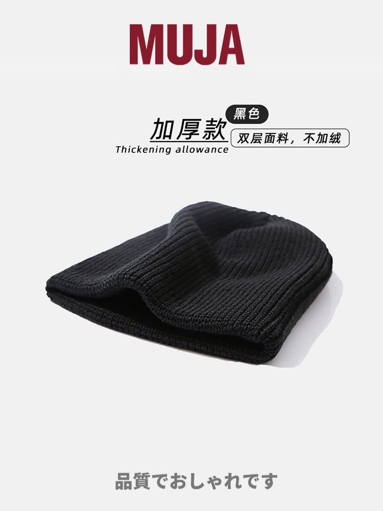 스타 스타일 일본식 MUJA 니트 모자 따뜻한 모직 모자 패션 바오터우 모자 커플 심플 겨울 모자 블랙