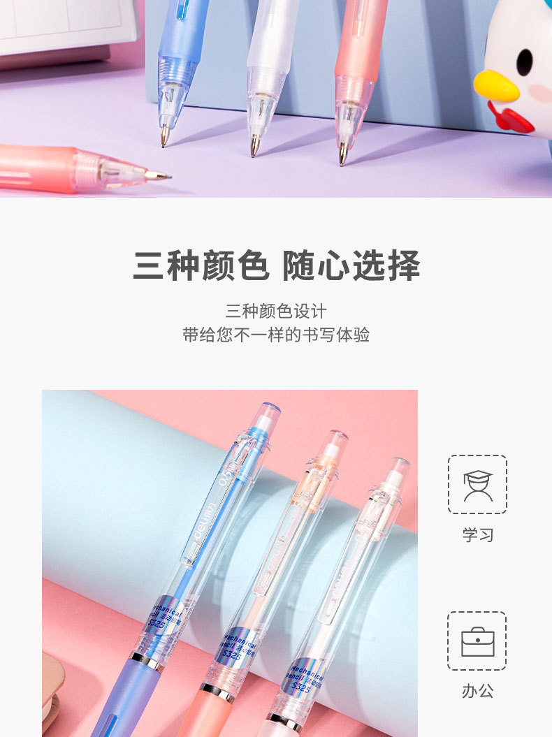 델리 S325/S326 플라스틱 활동 연필 학생 0.5/0.7mm 캔디 컬러 귀여운 간단한 기계 연필스토어 가기