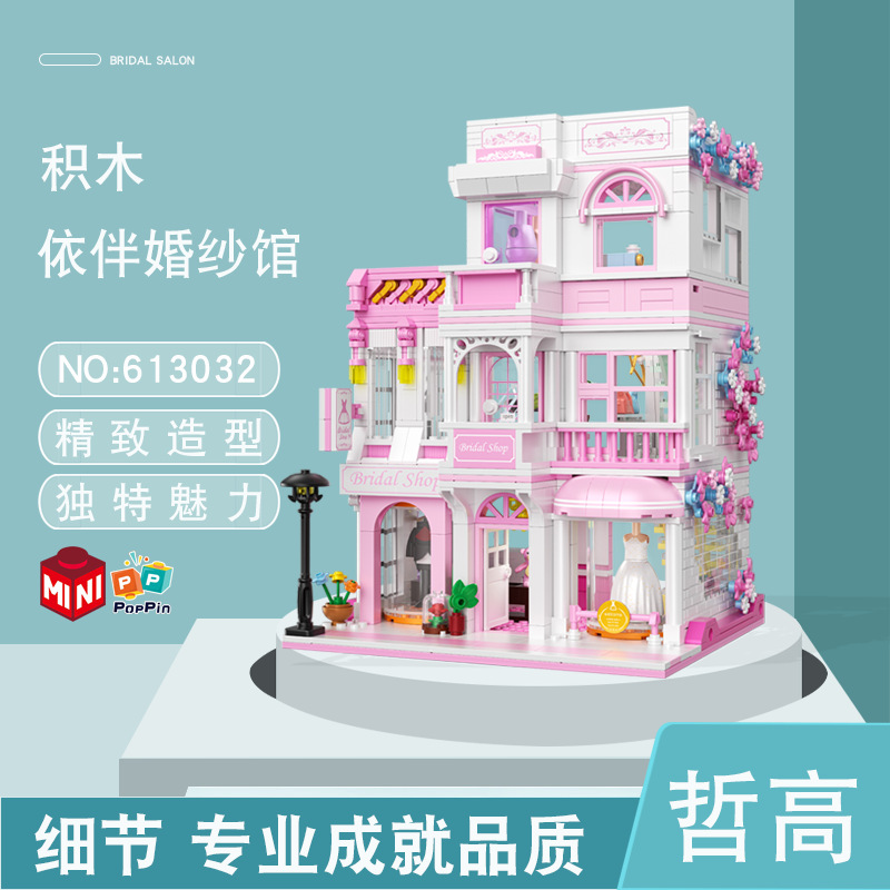 Zhegao 613032-4 웨딩 원피스 샵 크리에이티브 스트리트 뷰 빌딩 어린이 교육 조립 건물 블록 장난감 장식품 선물스토어 가기