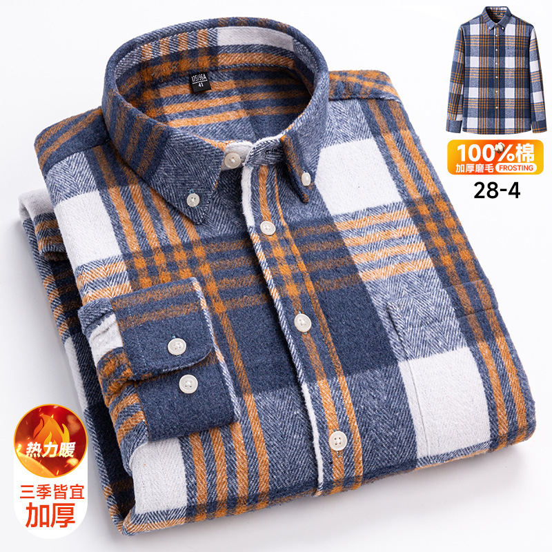 봄과 가을 새로운 남성 면 샌딩 플레이드 긴 소매 셔츠 패션 캐주얼 올 매치 포켓 탑 코튼 셔츠스토어 가기