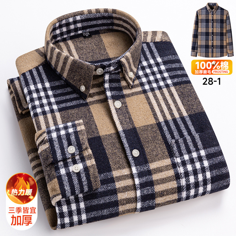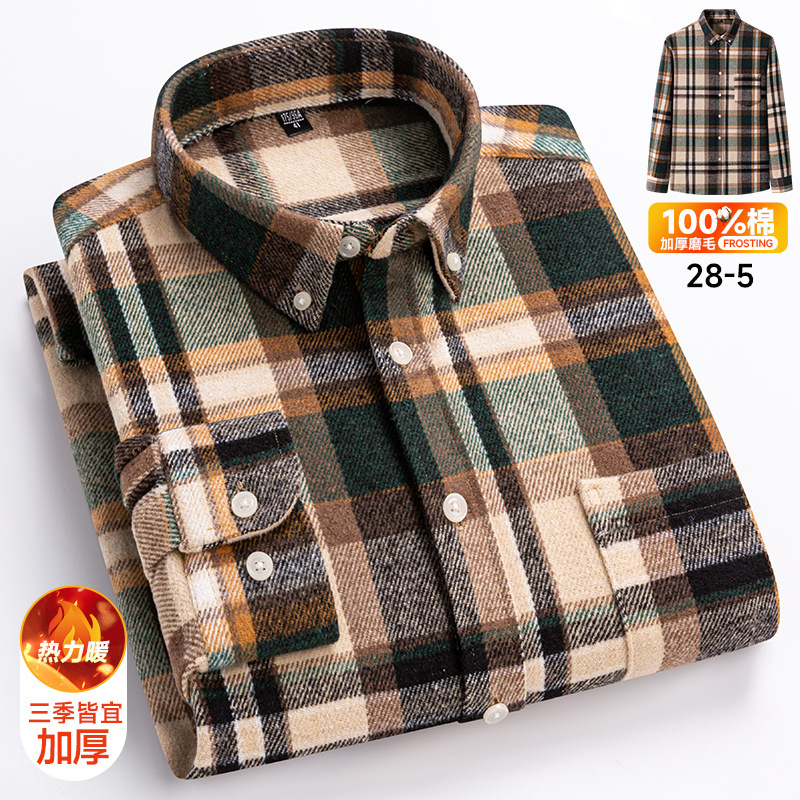 봄과 가을 새로운 남성 면 샌딩 플레이드 긴 소매 셔츠 패션 캐주얼 올 매치 포켓 탑 코튼 셔츠