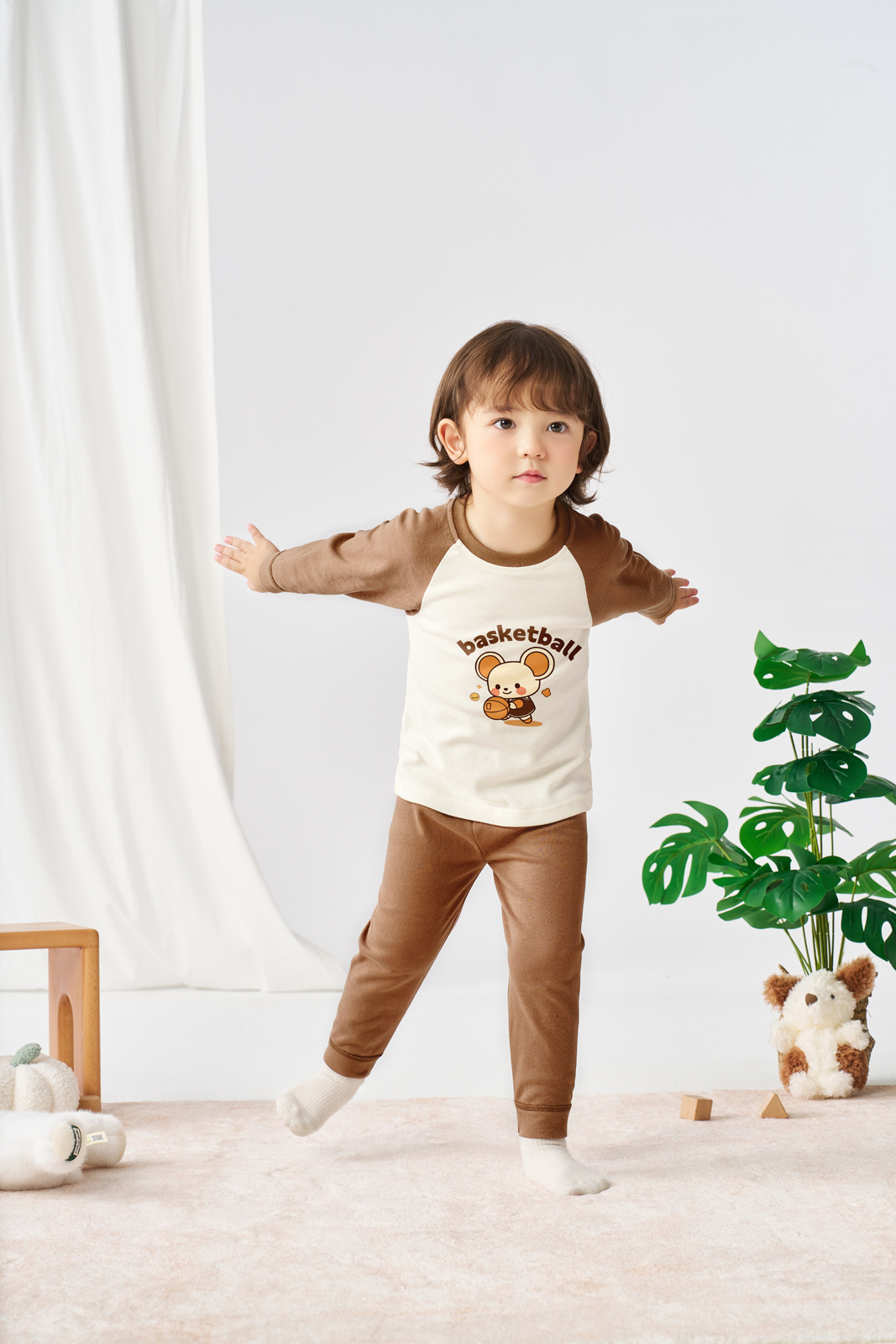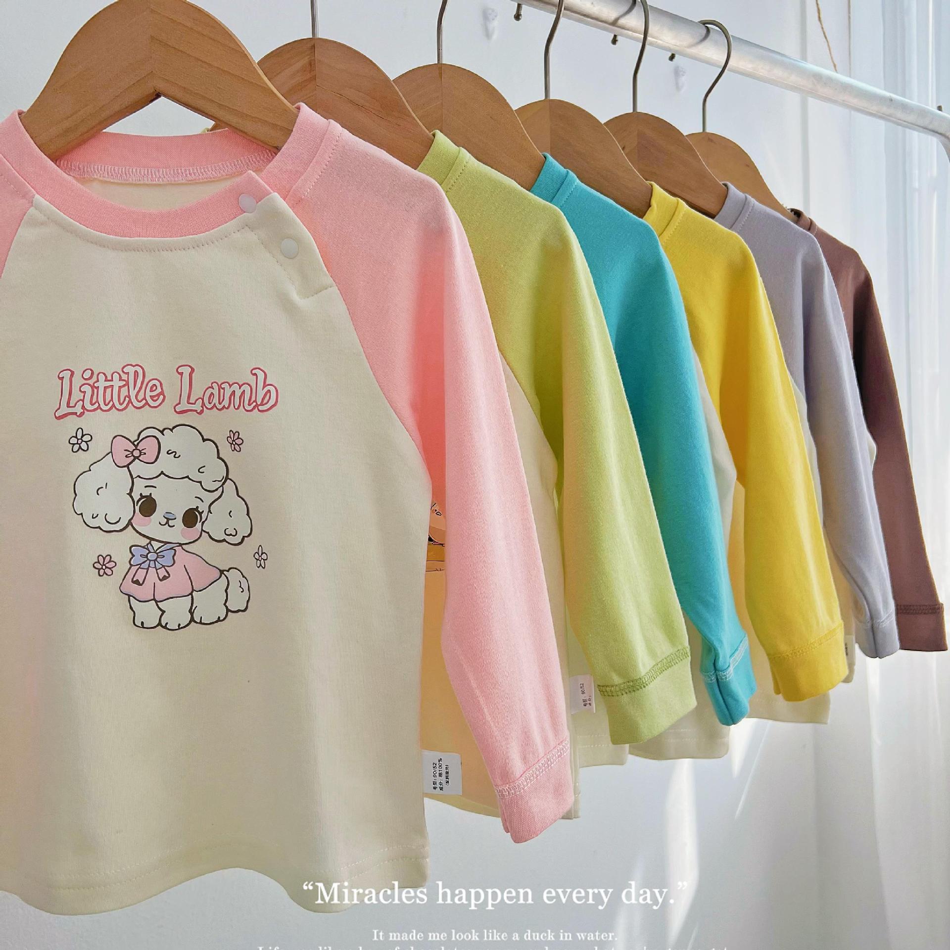 24 새로운 봄과 가을 어린이 다채로운 라글란 소매 플랫 허리 세트 홈 옷 가을 옷 긴 소매 바지 세트 소년 소녀스토어 가기