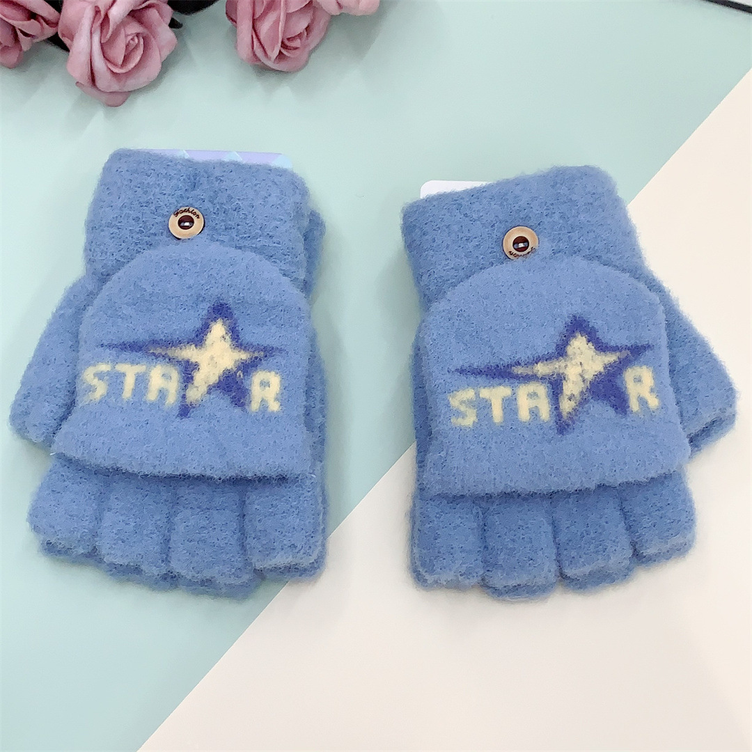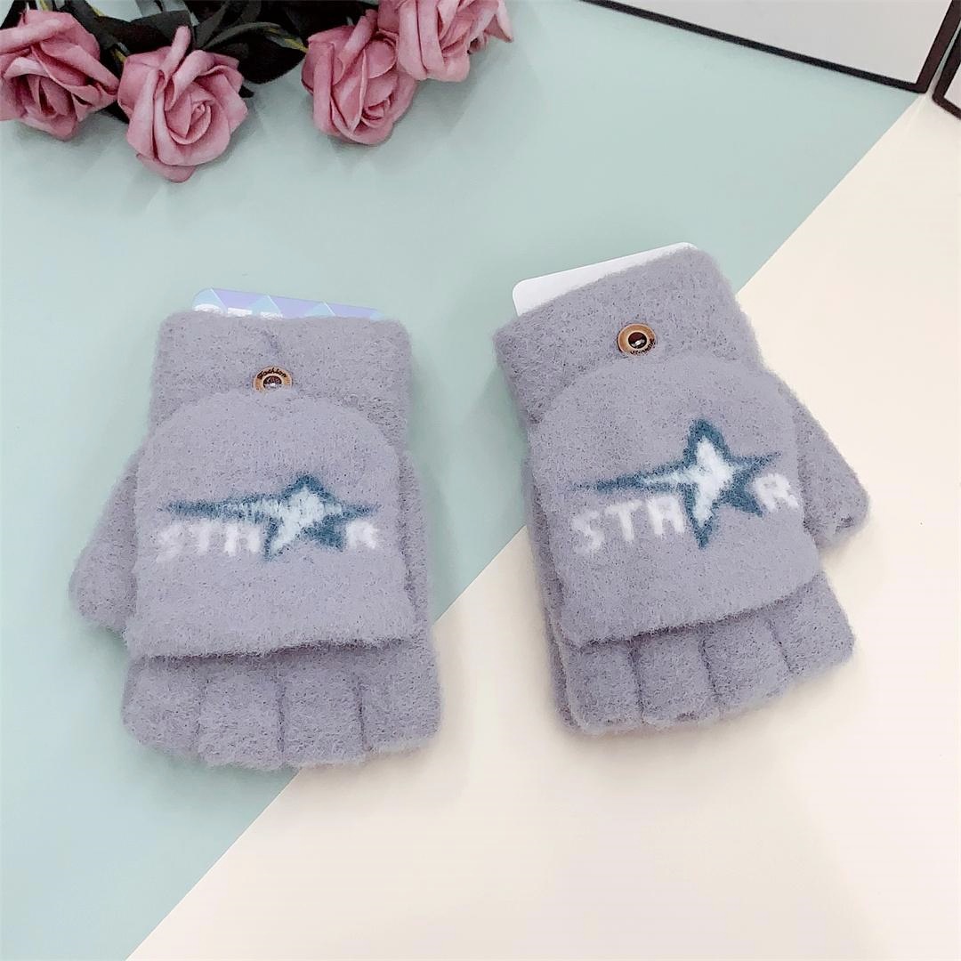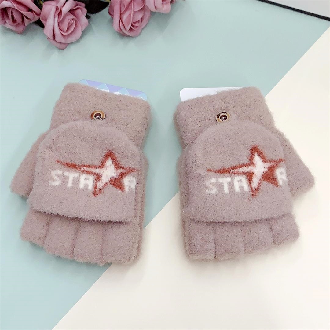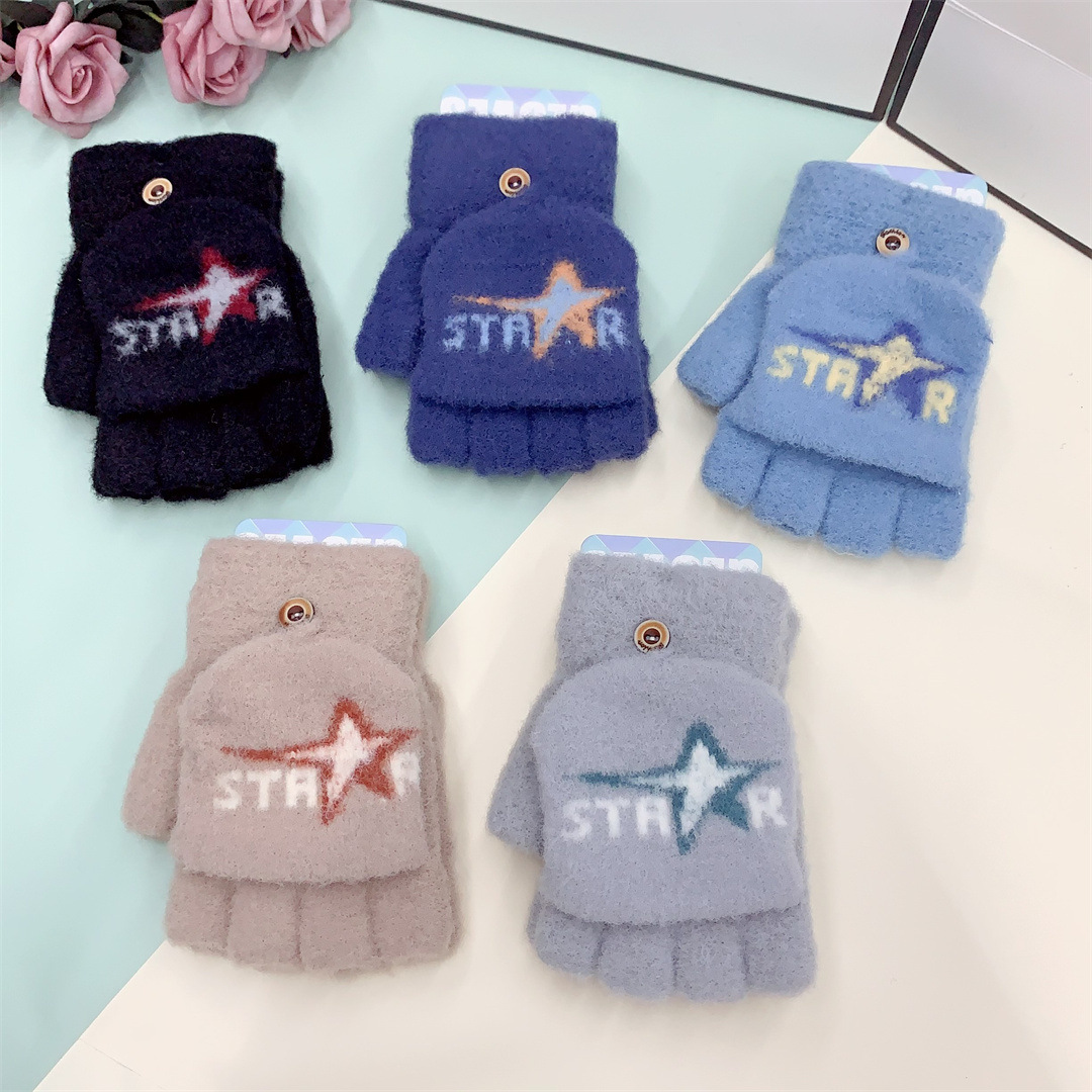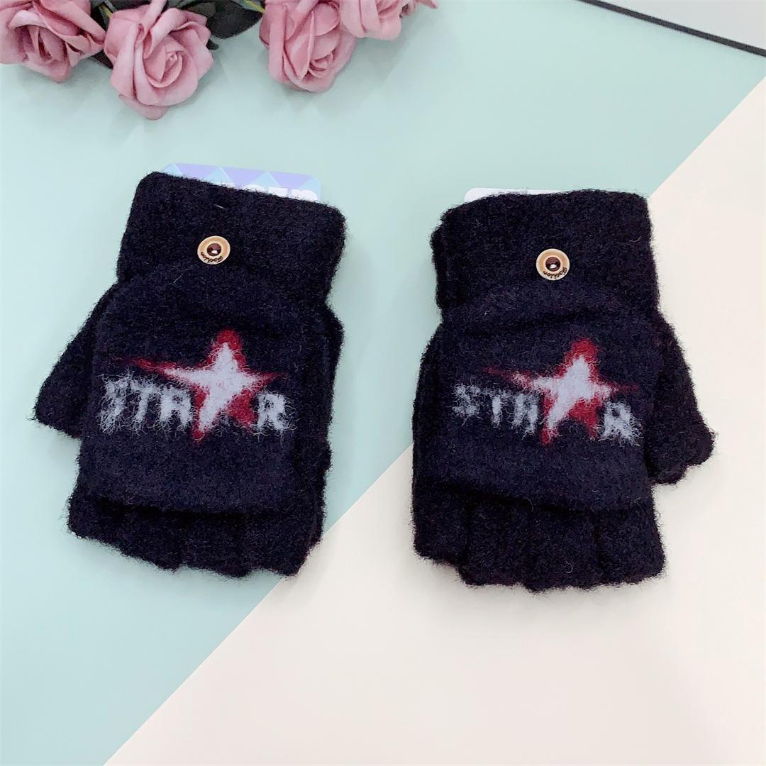 2024 가을 겨울 남성 학생 간단한 조커 다섯개 별 플립 니트 장갑 따뜻한 야외 글쓰기