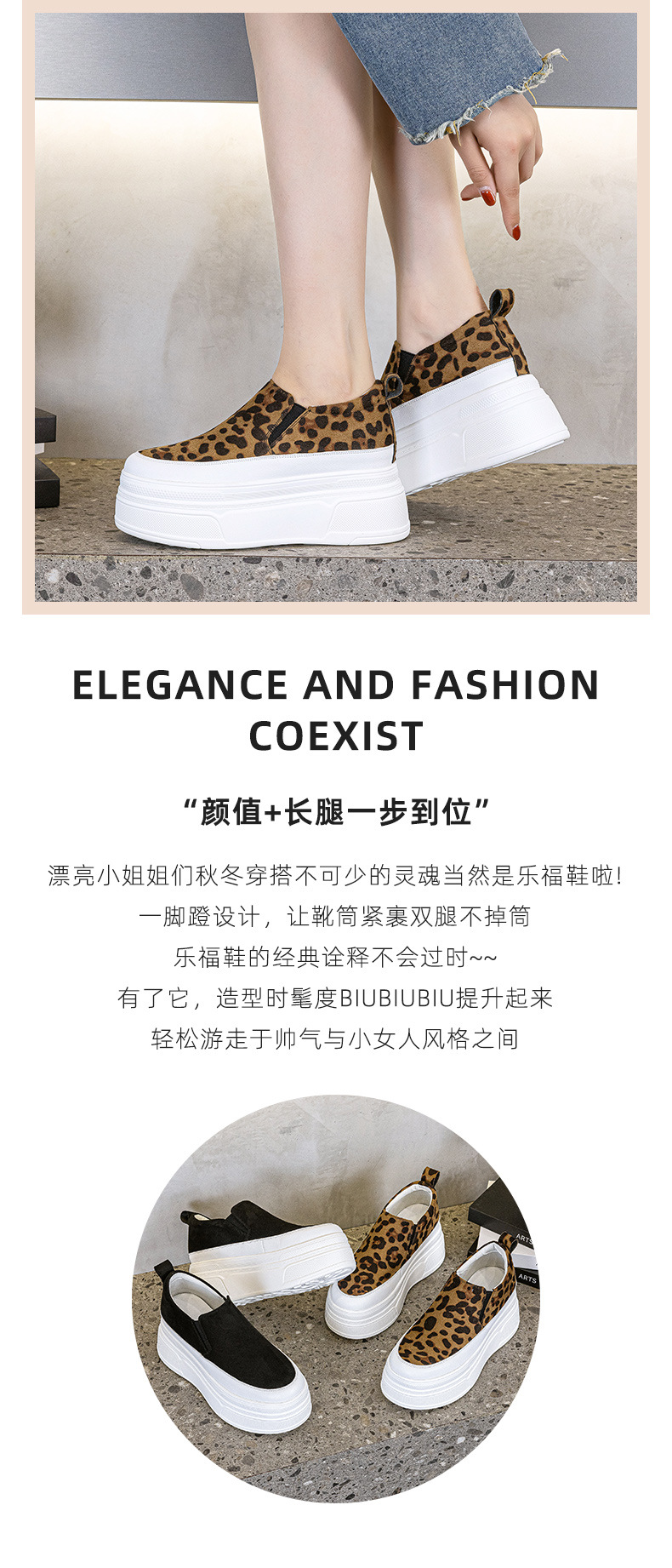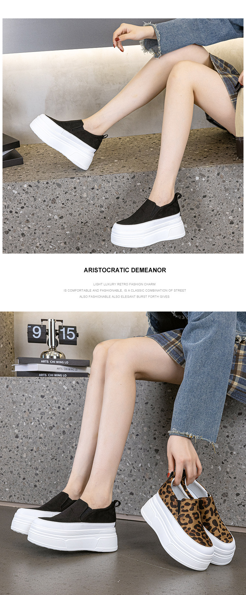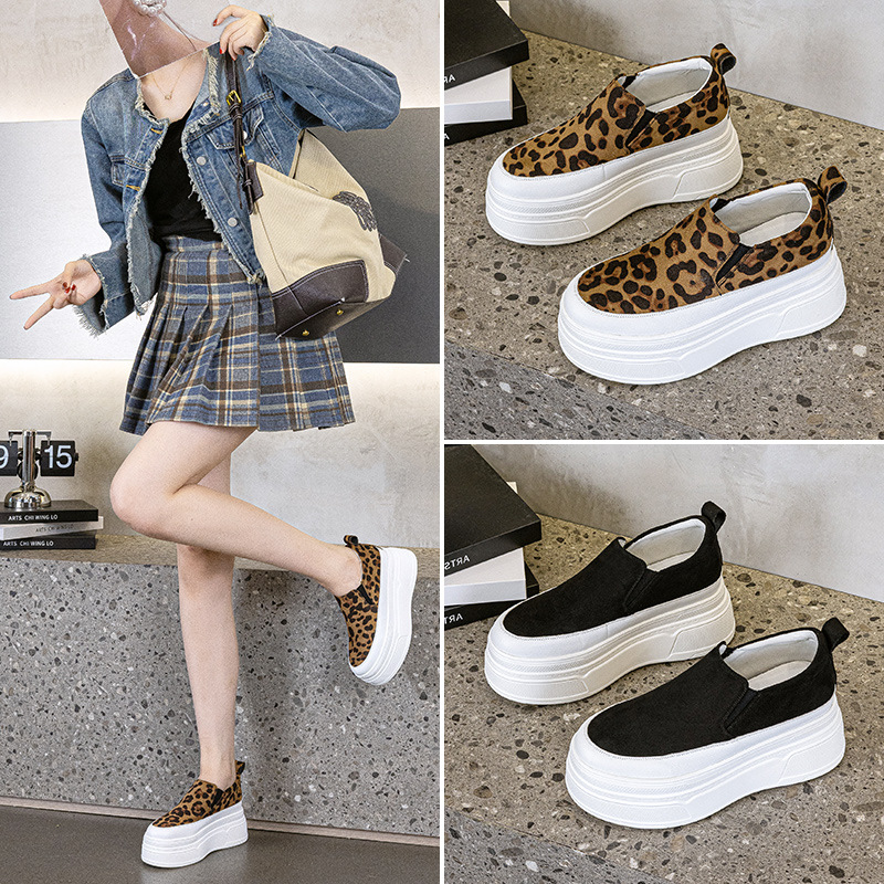 새로운 잎이 많은 신발 여성용 두꺼운 밑창 레오파드 무늬 올 매치 작은 학생 내부 높이 증가 싱글 레이어 신발 캐주얼 슬립 온 여성용 신발