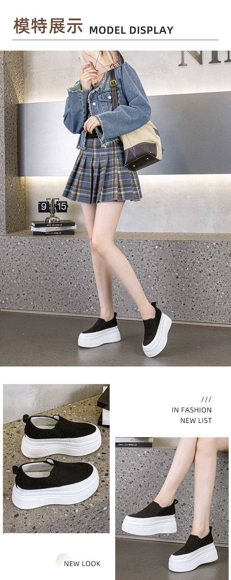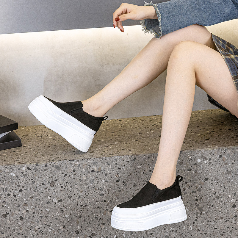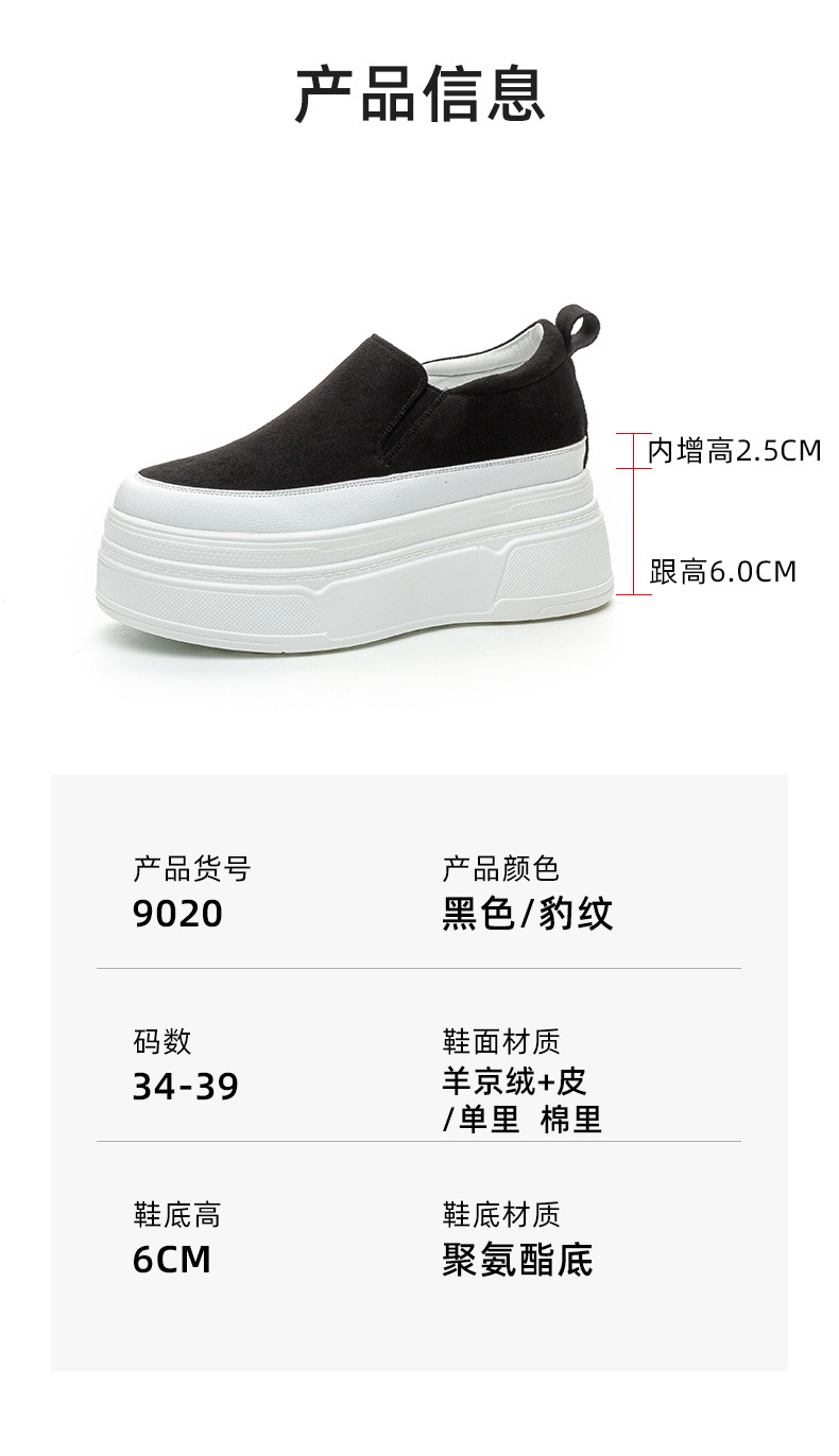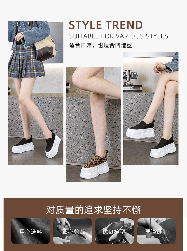 새로운 잎이 많은 신발 여성용 두꺼운 밑창 레오파드 무늬 올 매치 작은 학생 내부 높이 증가 싱글 레이어 신발 캐주얼 슬립 온 여성용 신발