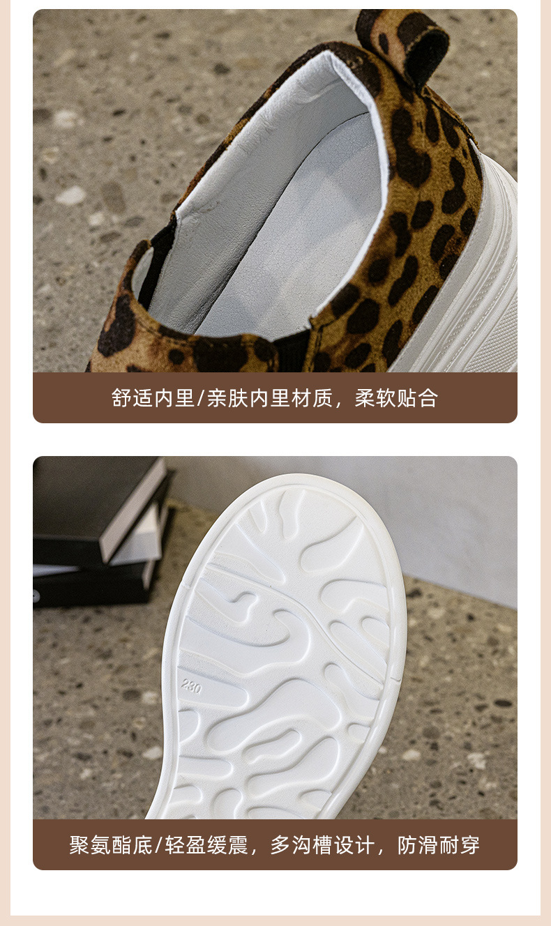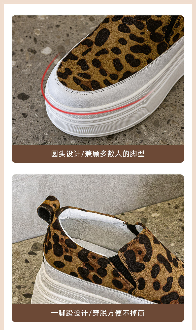 새로운 잎이 많은 신발 여성용 두꺼운 밑창 레오파드 무늬 올 매치 작은 학생 내부 높이 증가 싱글 레이어 신발 캐주얼 슬립 온 여성용 신발스토어 가기