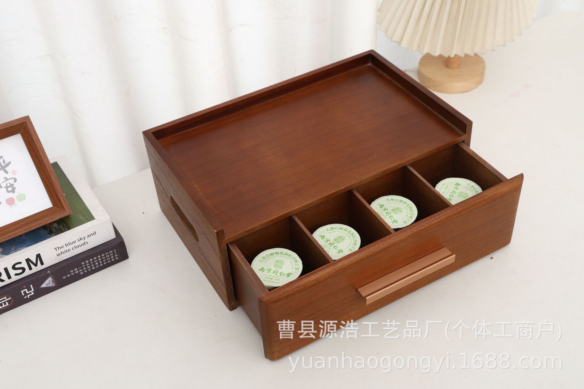 나무 차 가방 저장 상자 서랍 형 차 세트 저장 데스크탑 저장 기초 나무 아카시아 나무 동반자 차 가방 상자