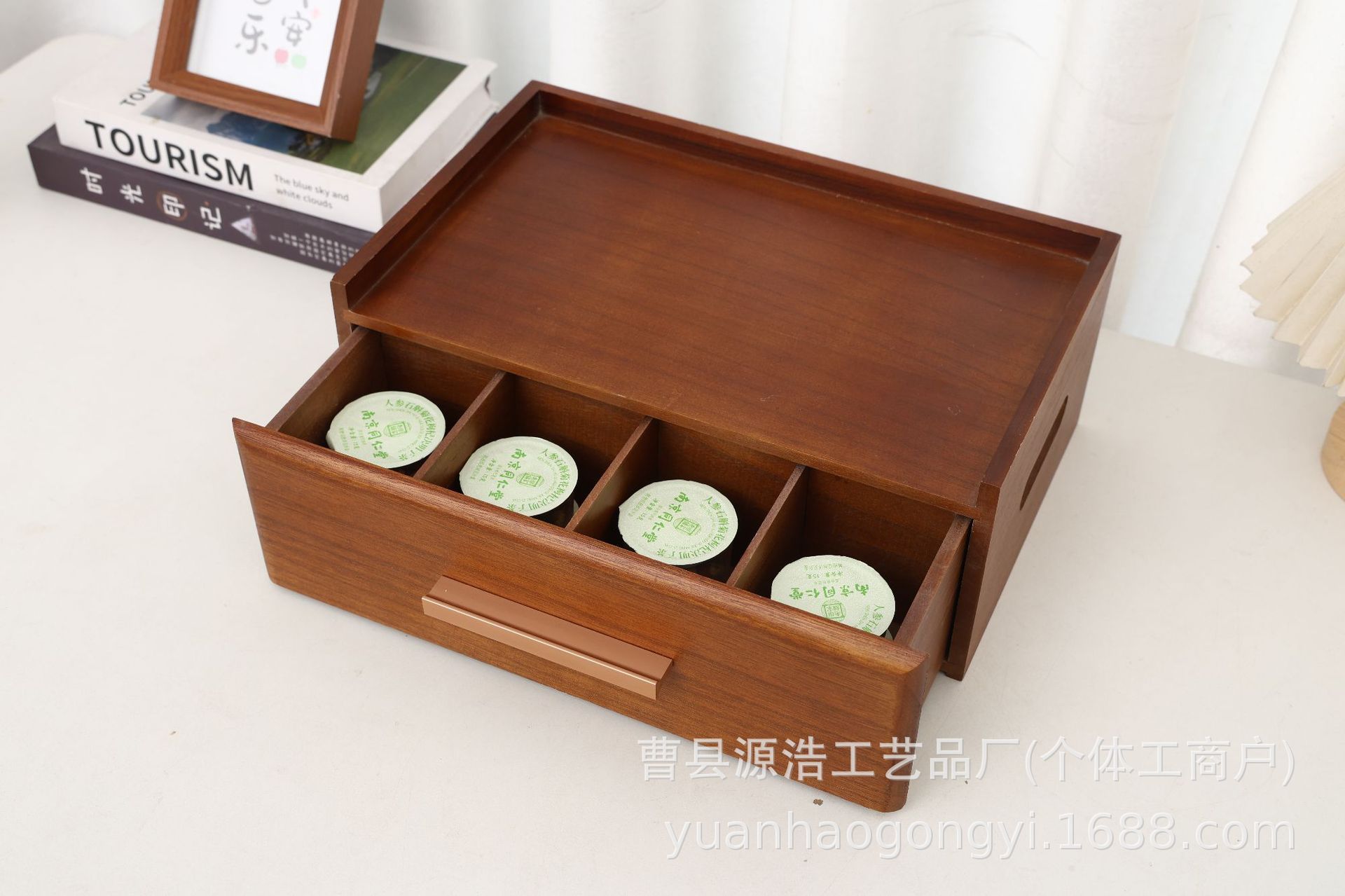 나무 차 가방 저장 상자 서랍 형 차 세트 저장 데스크탑 저장 기초 나무 아카시아 나무 동반자 차 가방 상자스토어 가기