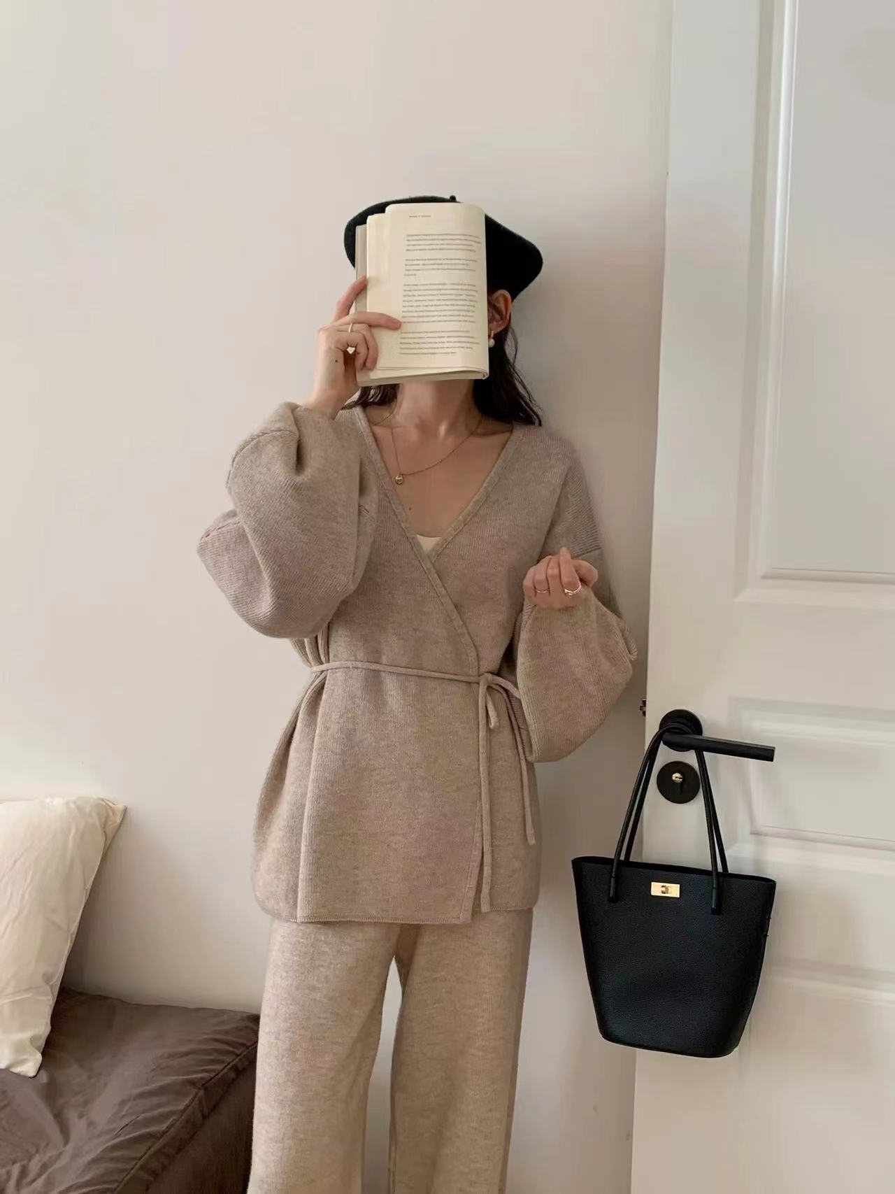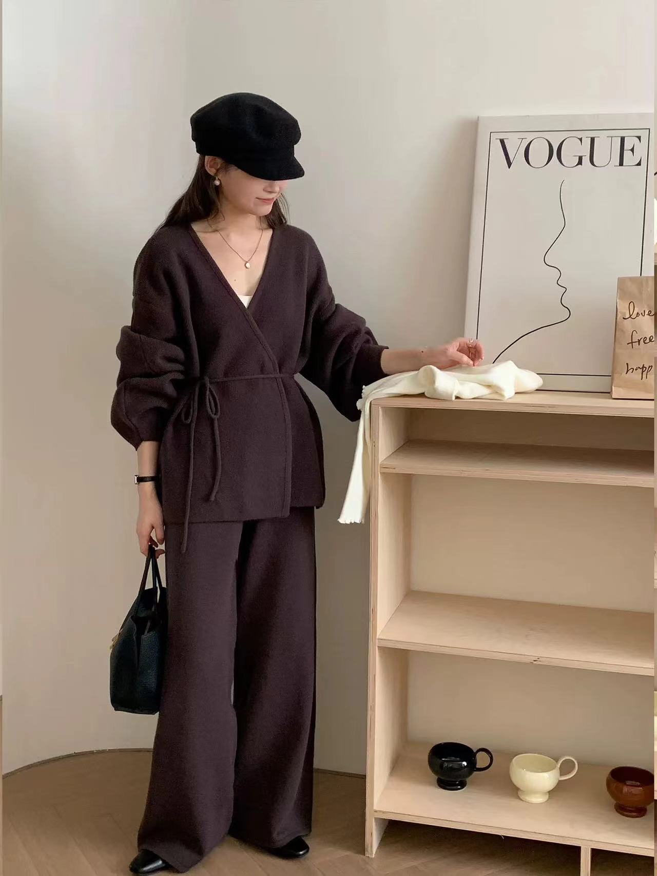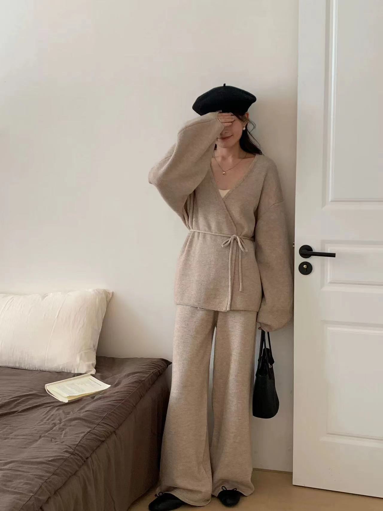작은 Xiangfeng 세트 여성의 가을 새로운 하이 엔드 센스 인기 연령 감소 캐주얼 바지 탑 니트 스웨터 투피스 세트스토어 가기