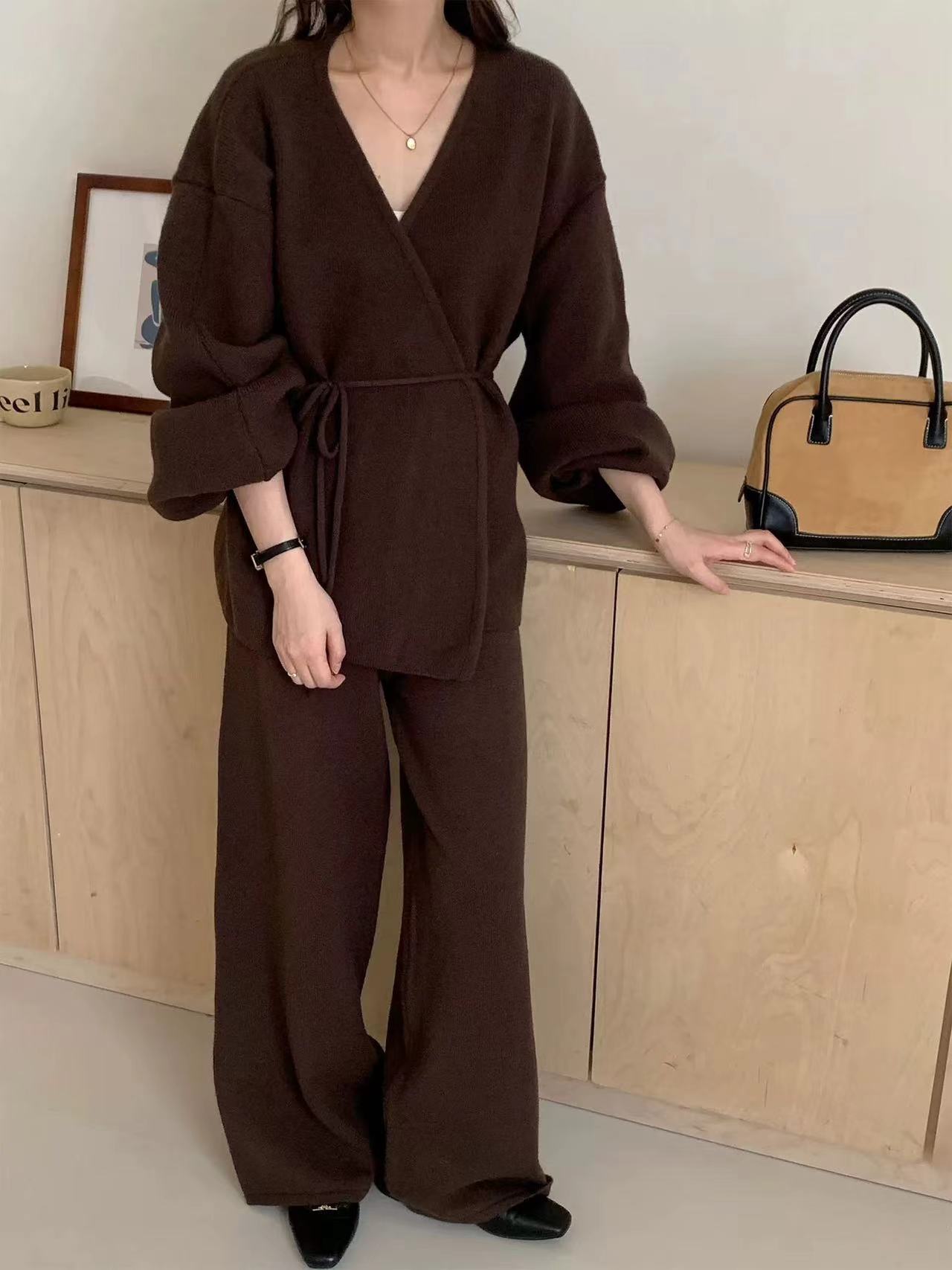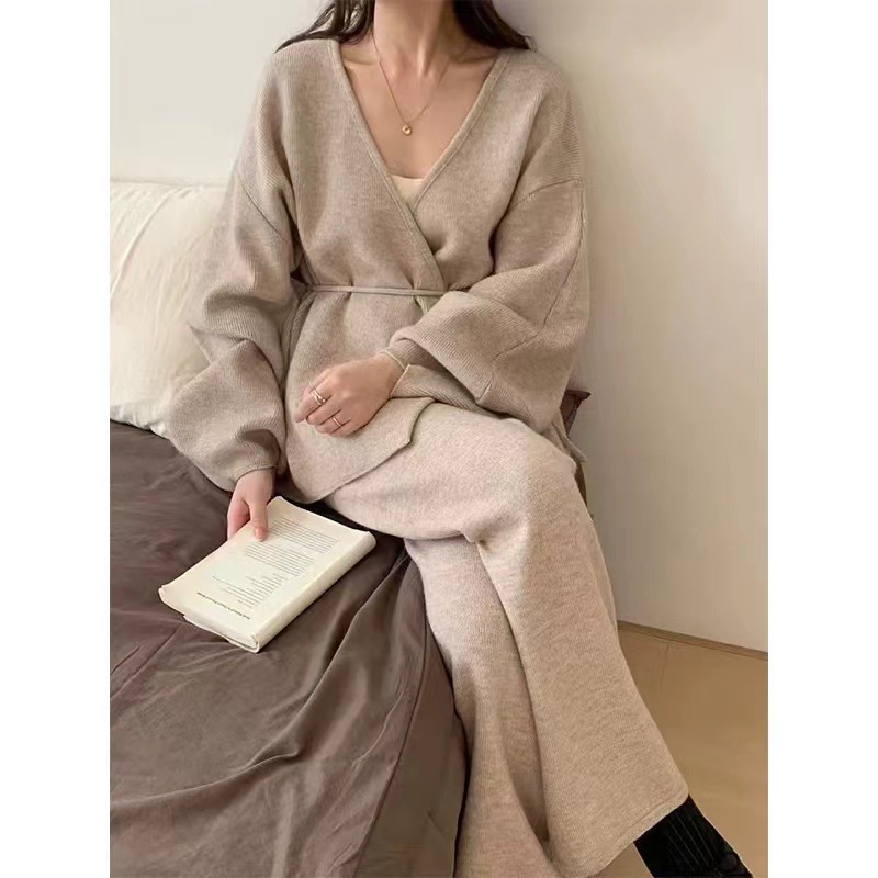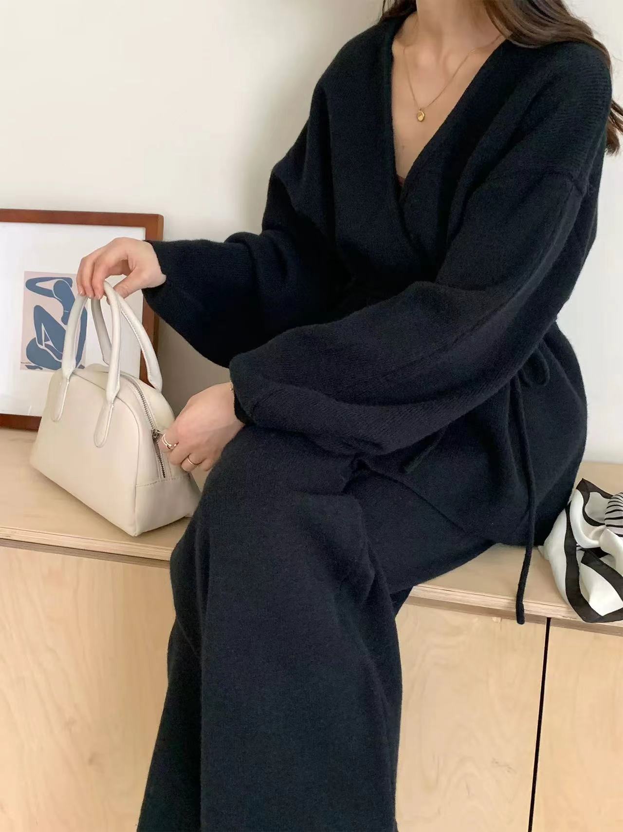 작은 Xiangfeng 세트 여성의 가을 새로운 하이 엔드 센스 인기 연령 감소 캐주얼 바지 탑 니트 스웨터 투피스 세트스토어 가기