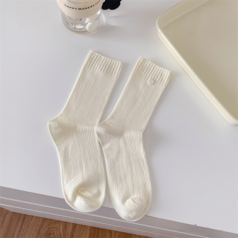 2024 양말 여성 가을과 겨울 새로운 쉘 밀크 화이트 튜브 양말 여성 면화 양말 도매스토어 가기