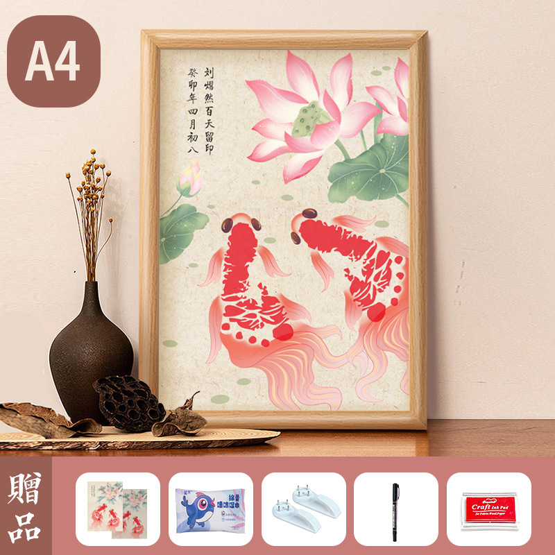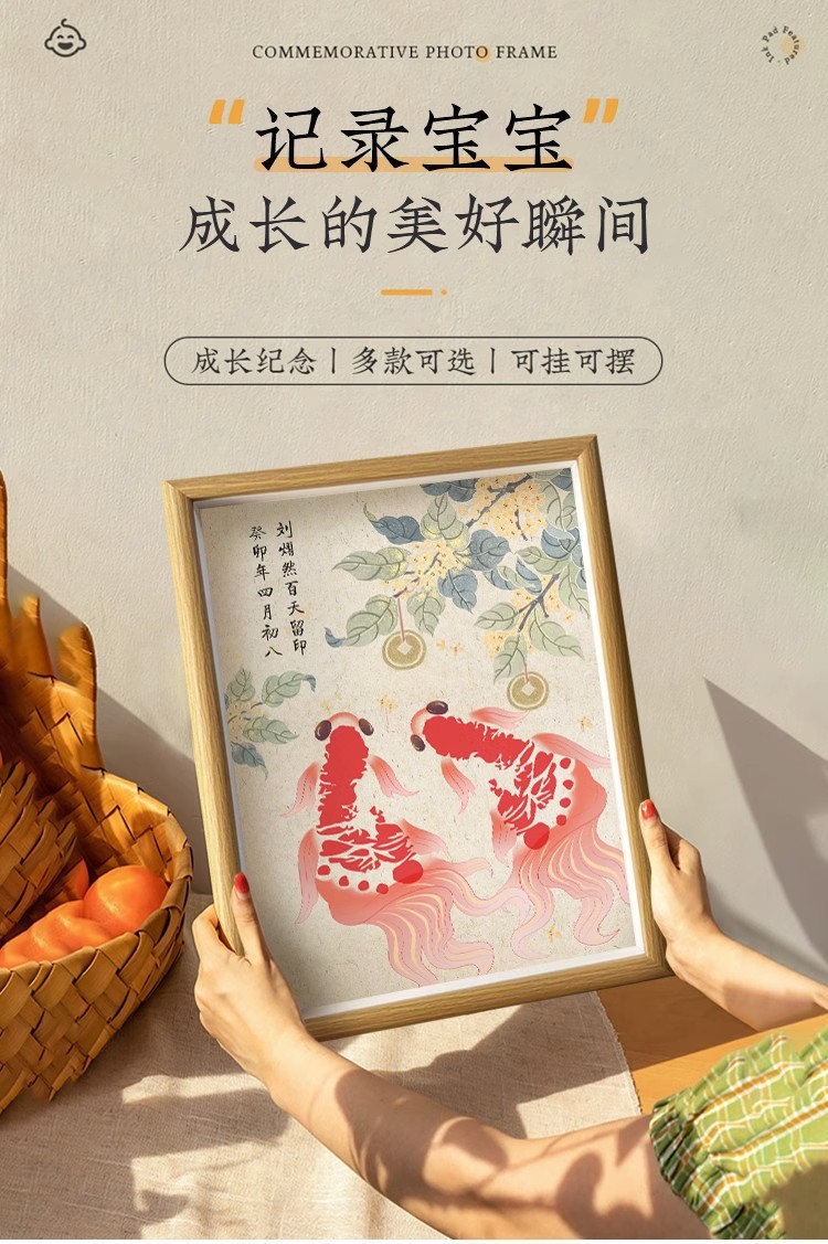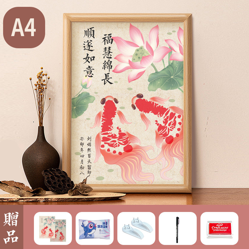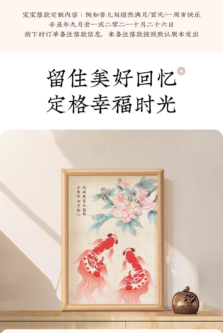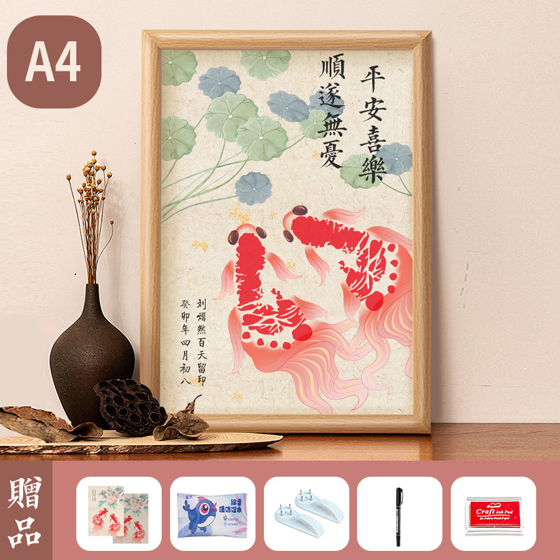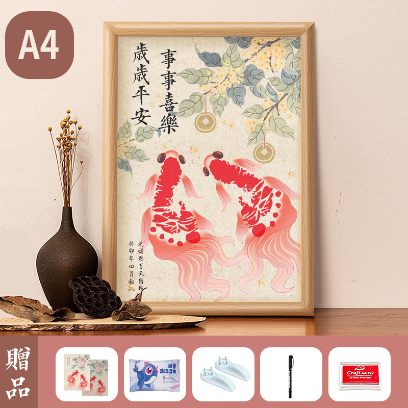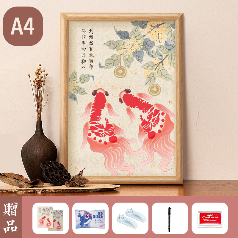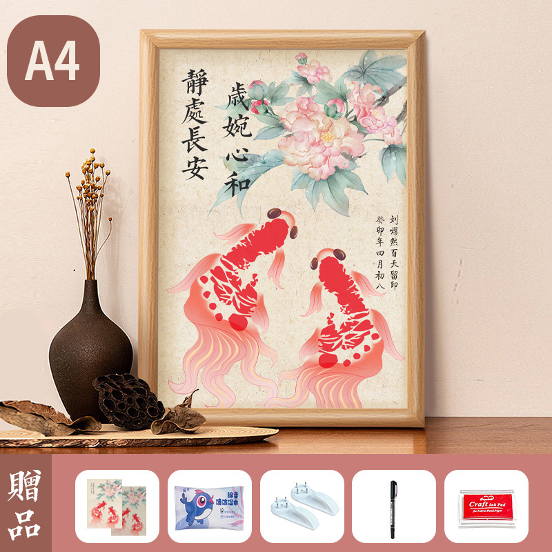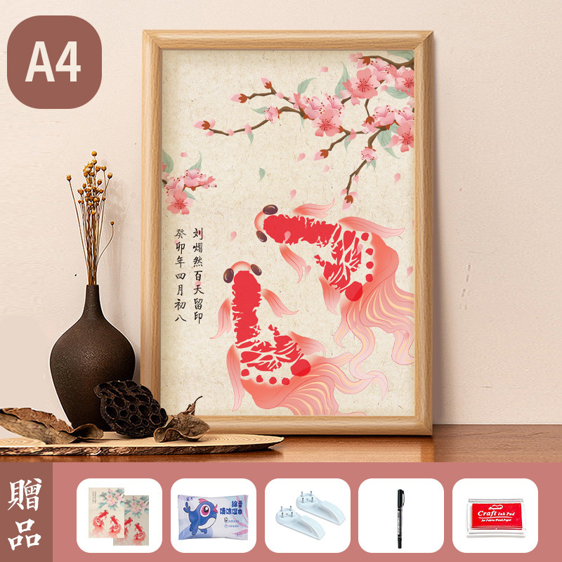 아기 1 년 된 손과 발 인쇄 새로운 잉어 잉크 핑크 칼리오 디스플레이 프레임 100 일 보름달 손과 발 인쇄 사진 프레임 세트 테이블