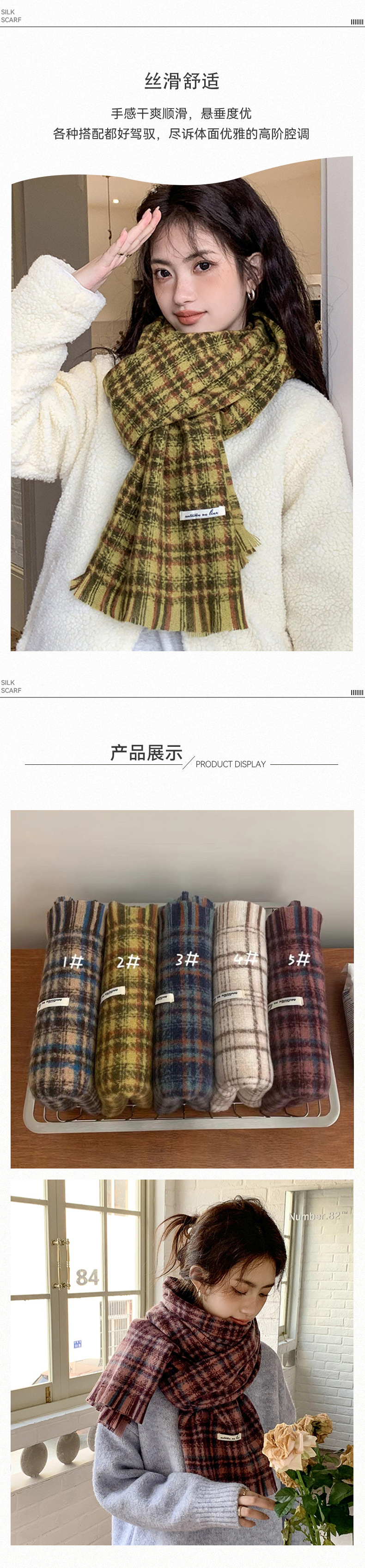 한국 짧은 수염 색상 일치 미세 그리드 스카프 여성의 날 부드러운 왁스 술 목도리 커플의 따뜻한 스카프 추천 가을과 겨울 분위기스토어 가기