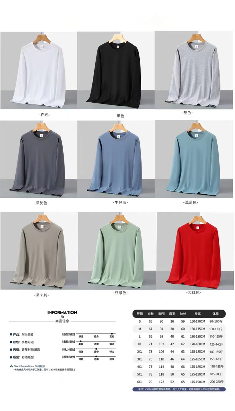 퓨어 코튼 남성용 긴팔 티셔츠 단색 흰색과 검은 색 가을 의류 플러스 사이즈 최고 남성용 티셔츠 가을 내베이스 셔츠 레드스토어 가기