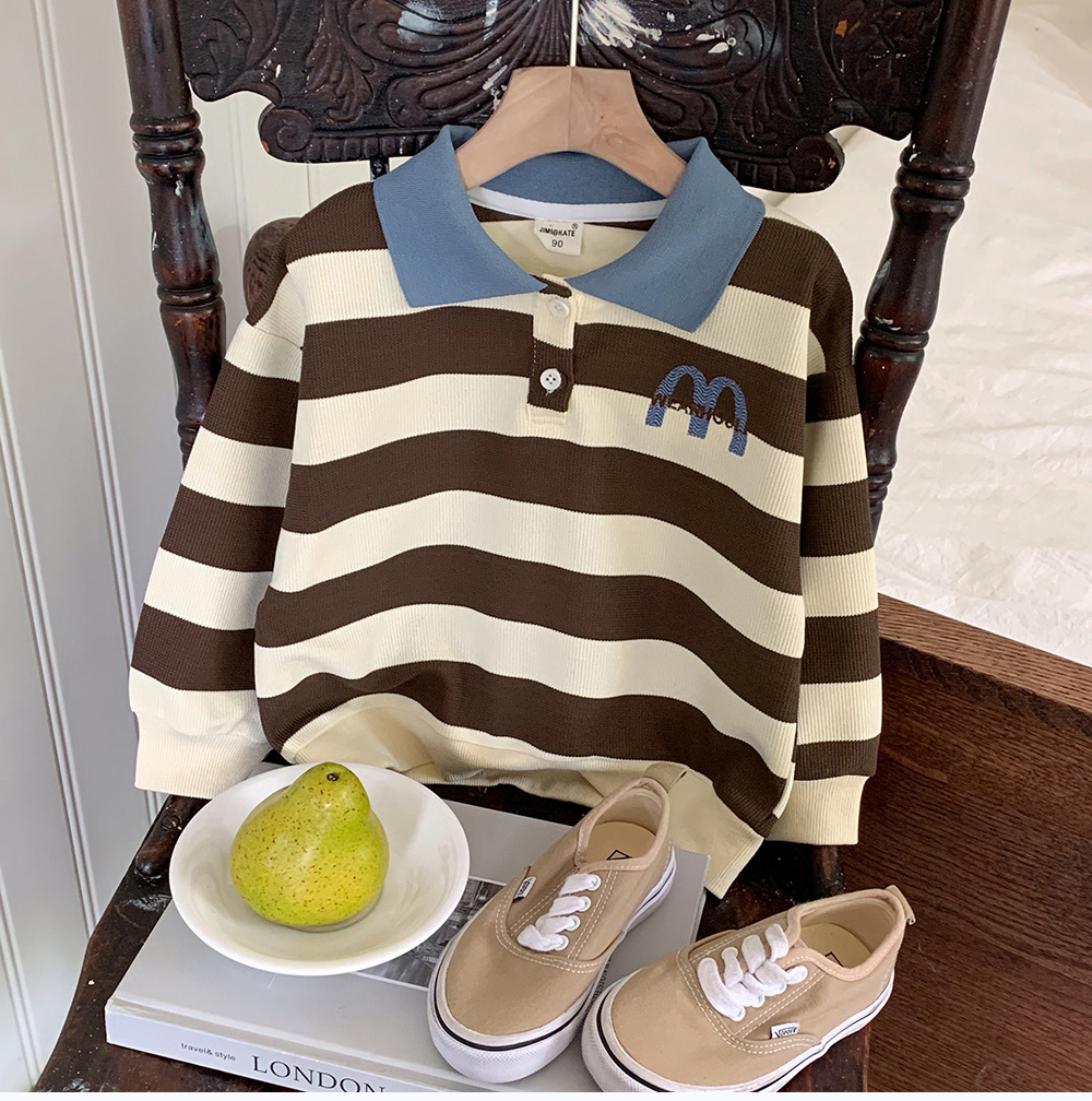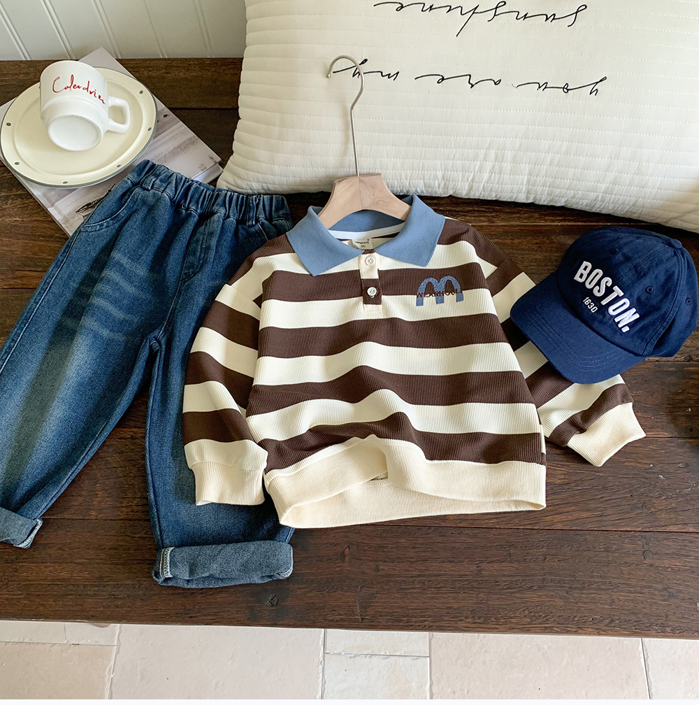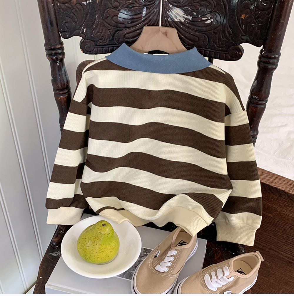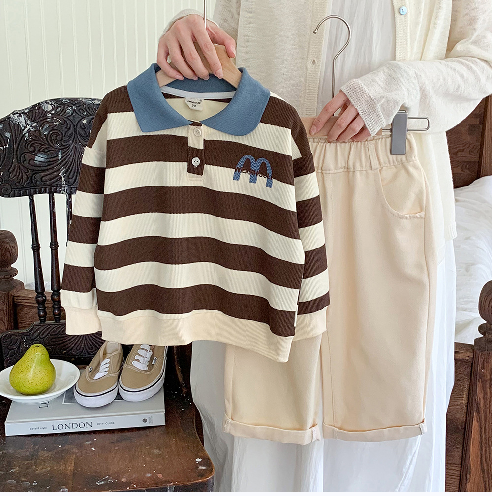 작은 C 급우 2024 새로운 가을 어린이 옷깃 스웨터 한국식 긴팔 자켓 어린이 소년 스웨터스토어 가기
