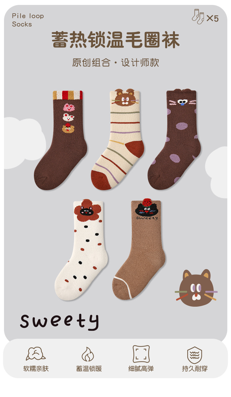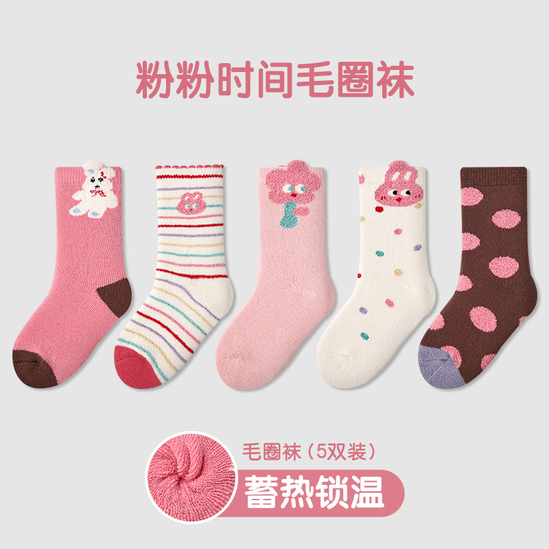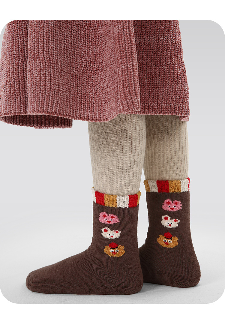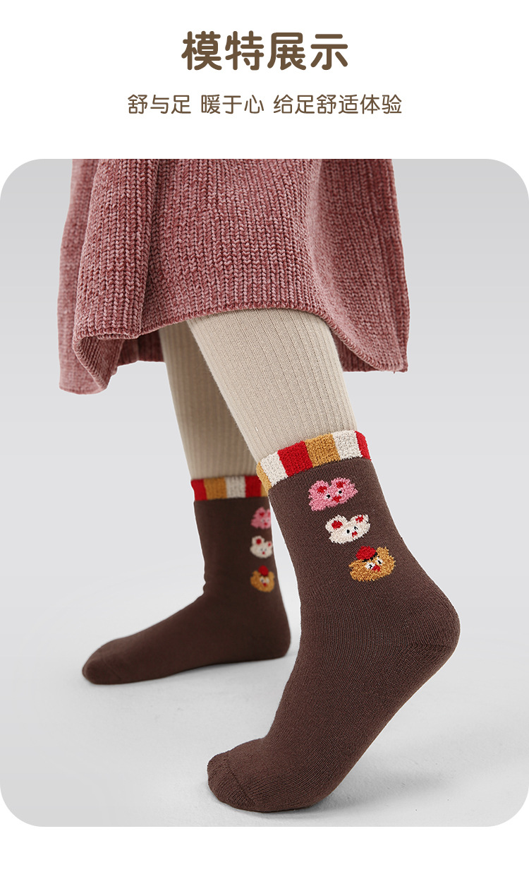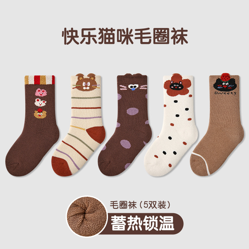 어린이 양말 24 가을과 겨울 도매 귀여운 고양이 웨이브 포인트 소녀 양말 따뜻한면 어린이 두꺼운 테리 양말스토어 가기