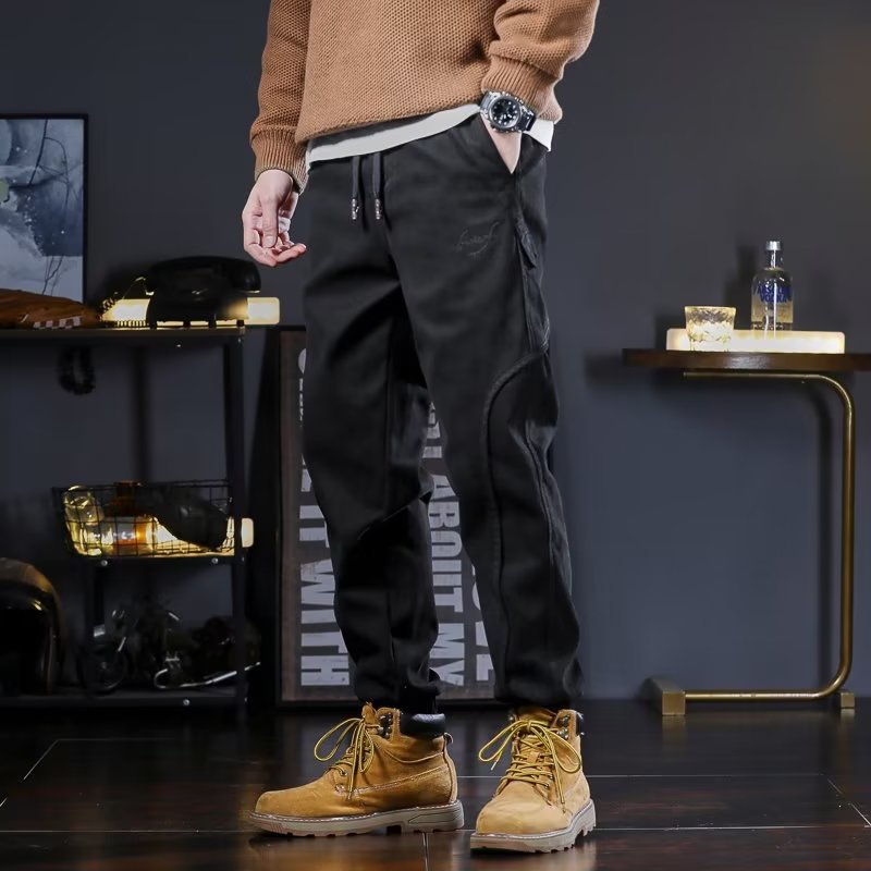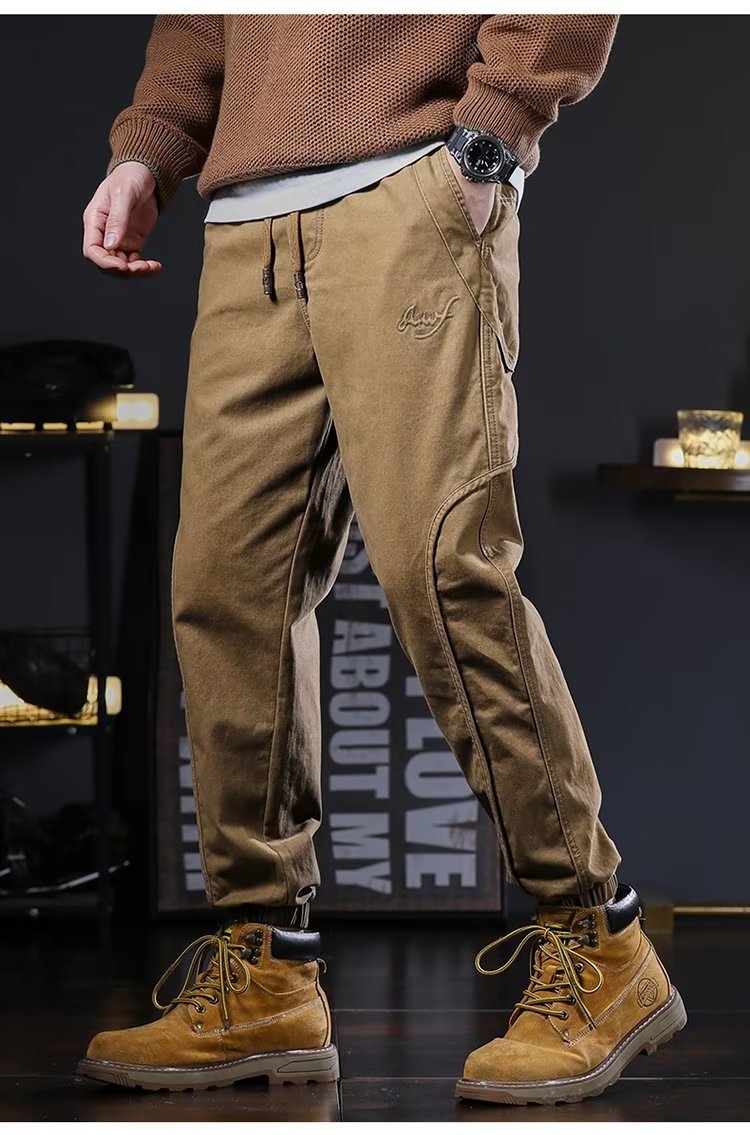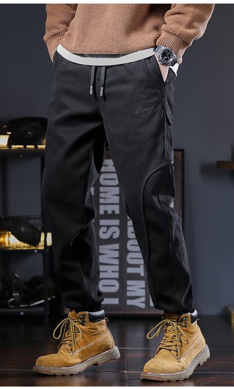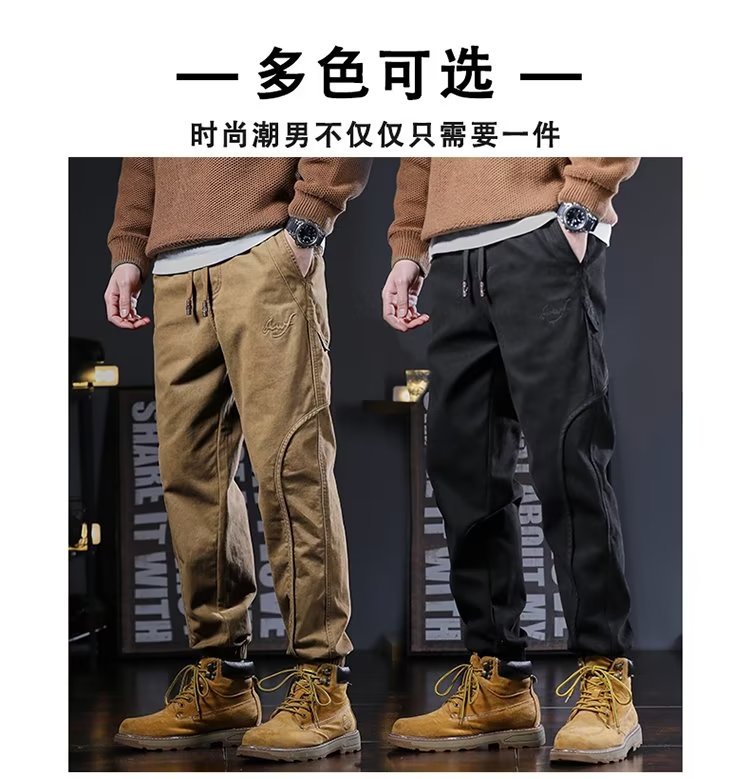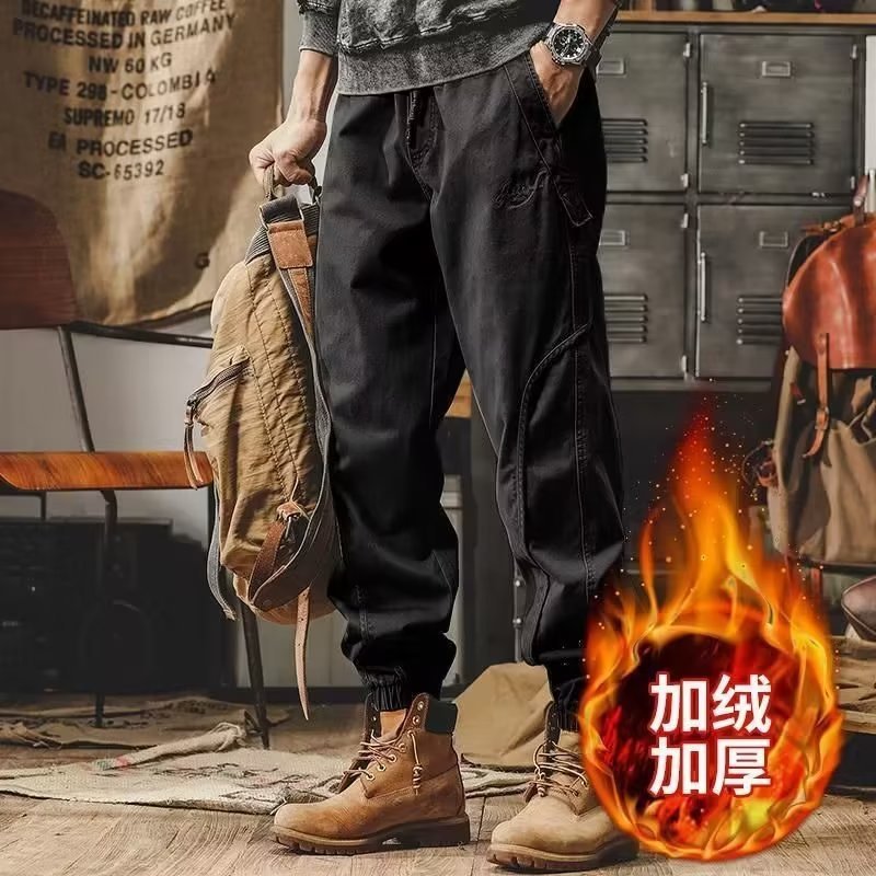 아메리칸 스타일화물 바지 남자 가을과 겨울 새로운 기모 따뜻한 미국 스타일 느슨한 유행 브랜드 멀티 포켓 다리 번들 캐주얼 바지스토어 가기