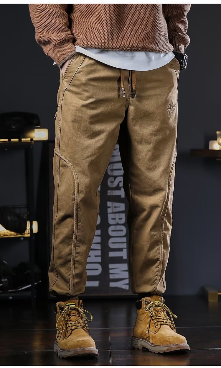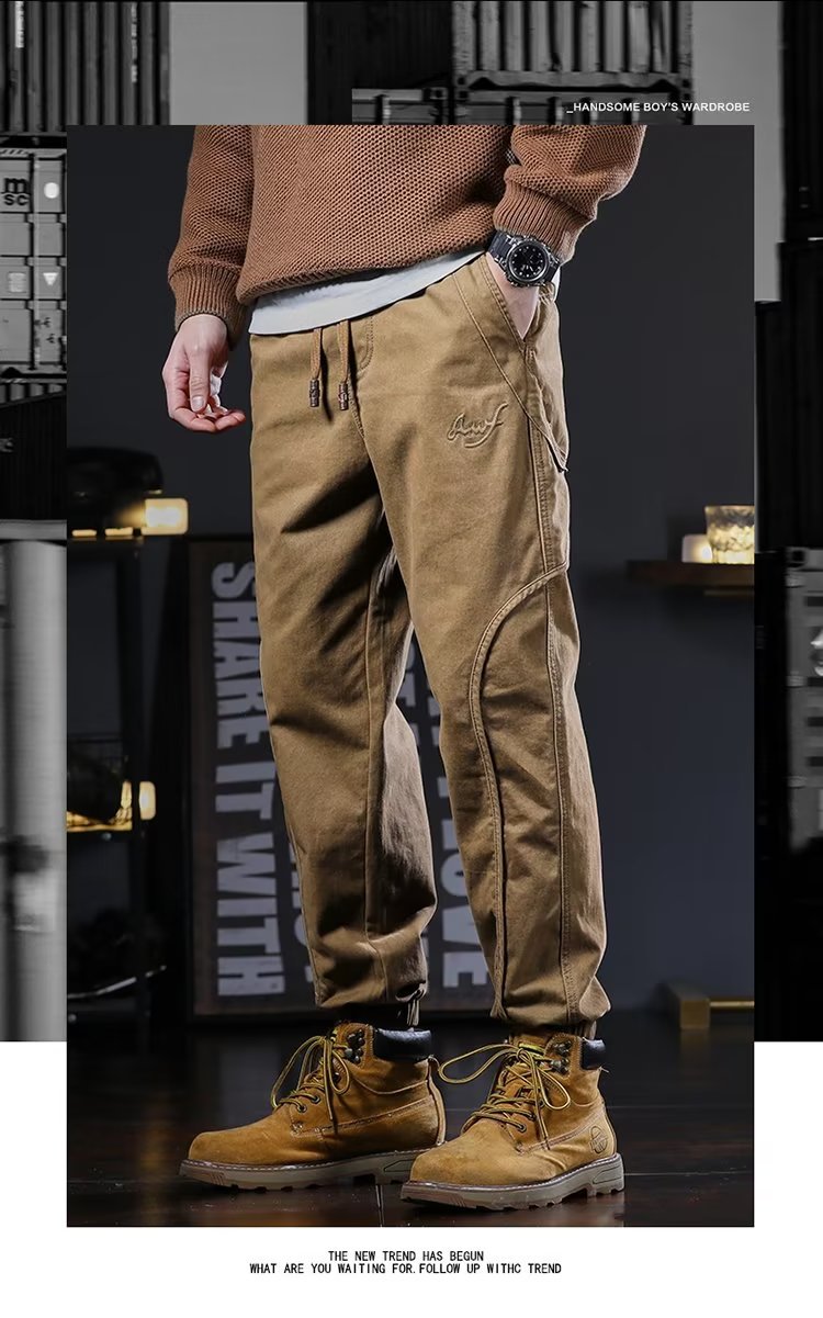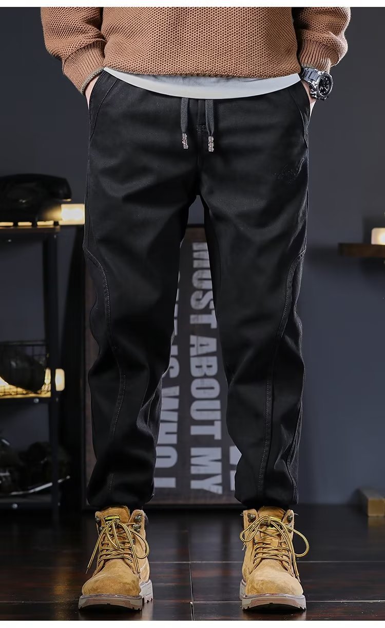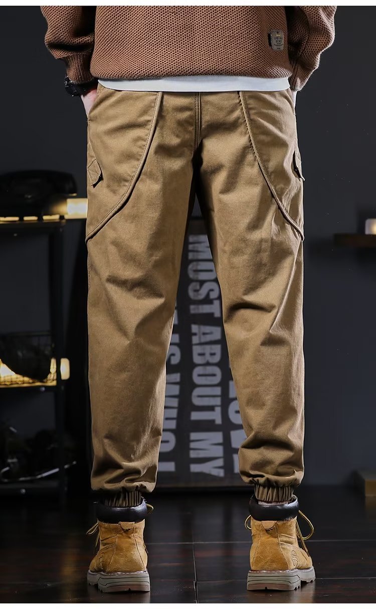 아메리칸 스타일화물 바지 남자 가을과 겨울 새로운 기모 따뜻한 미국 스타일 느슨한 유행 브랜드 멀티 포켓 다리 번들 캐주얼 바지스토어 가기