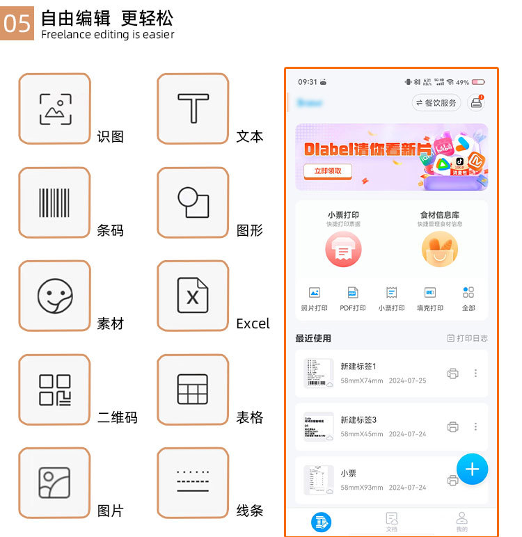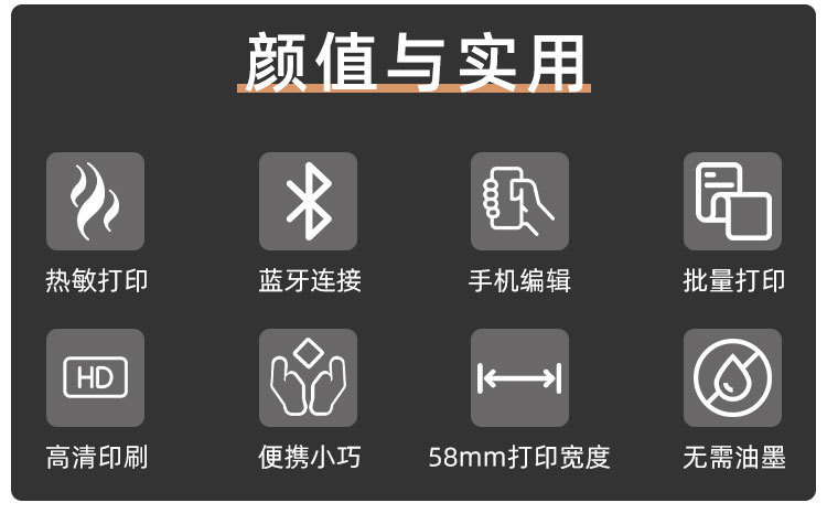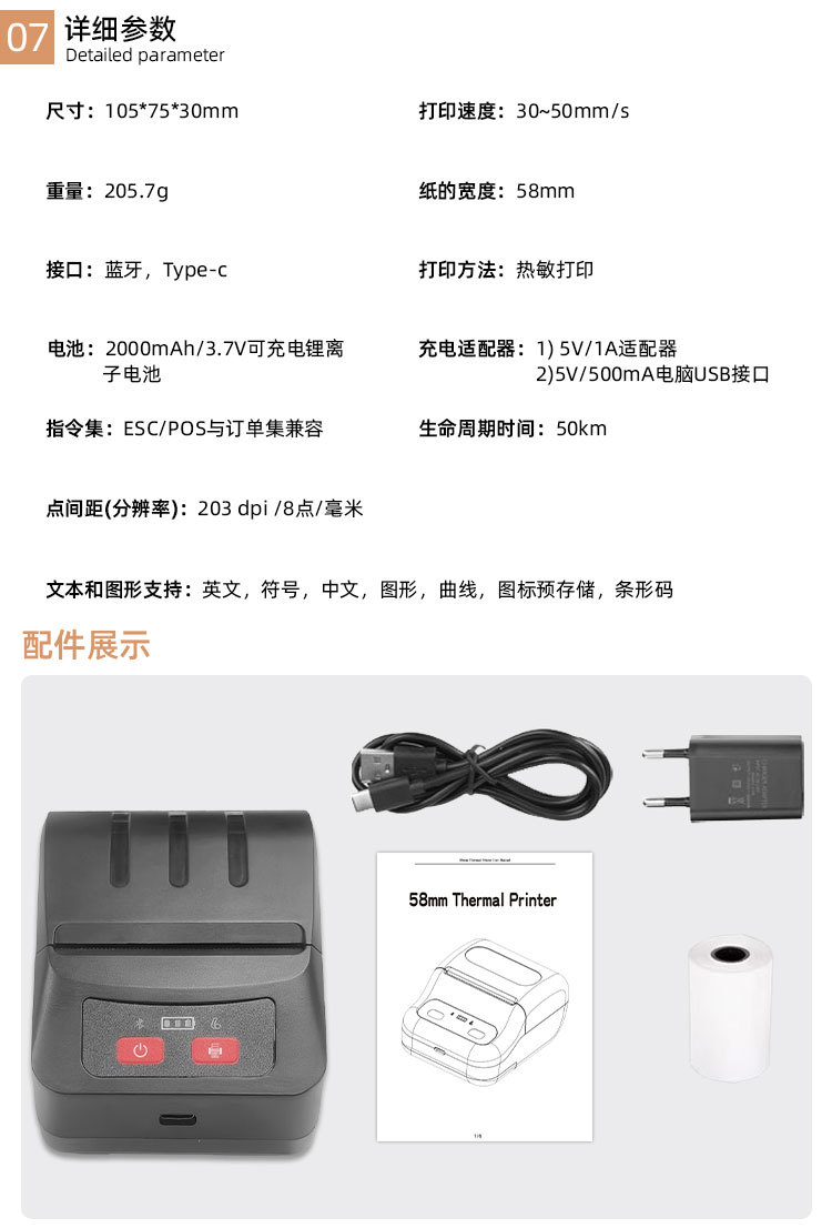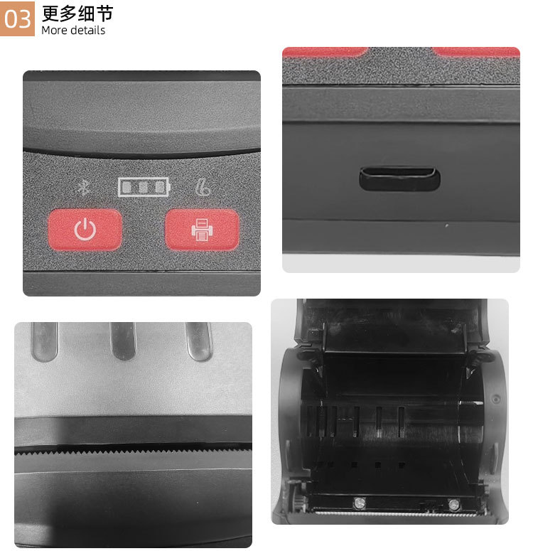 - 支持蓝牙功能,支持Android,iOS和Windows,方便您无线打印设备中的数据
