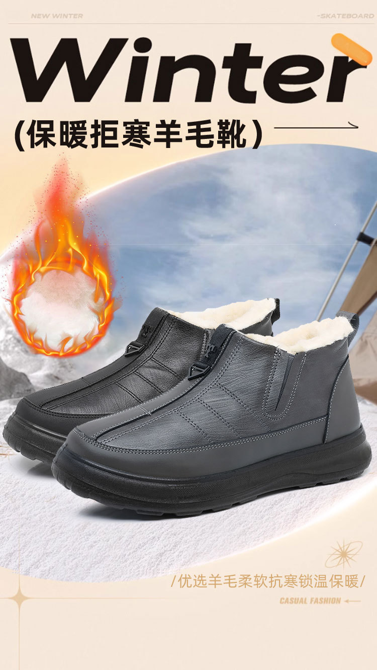 2025 새로운 겨울 남성 면화 방수 미끄럼 방지 양모 슬립 온 따뜻한 면화 부츠 플러스 벨벳 두꺼운 스노우 부츠