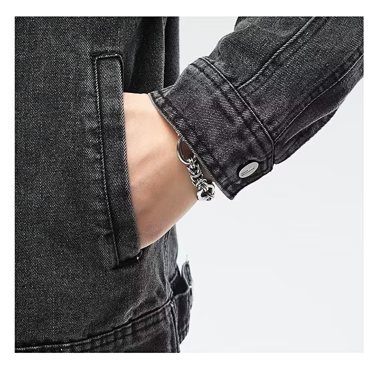 유행 브랜드 데님 재킷 소년 가을과 겨울 새로운 홍콩 스타일 유행 슬림 핏 복고풍 기모 올 매치 재킷