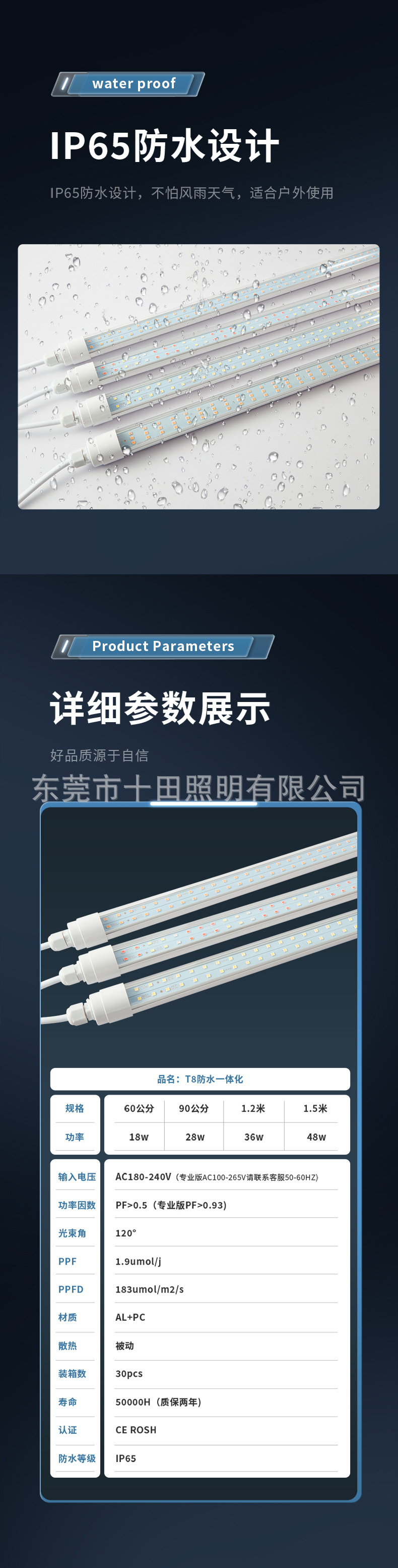 T8 방수 일체형 램프 묘목 배양 램프 온실 수경 재배 야외 식물 재배용 IP65 식물 LED 램프