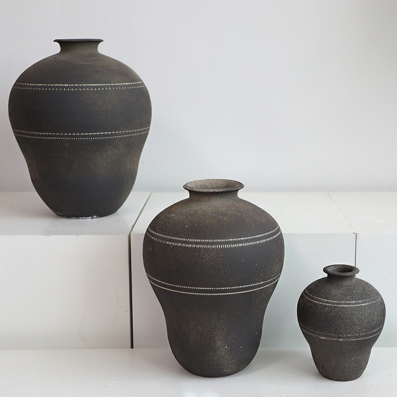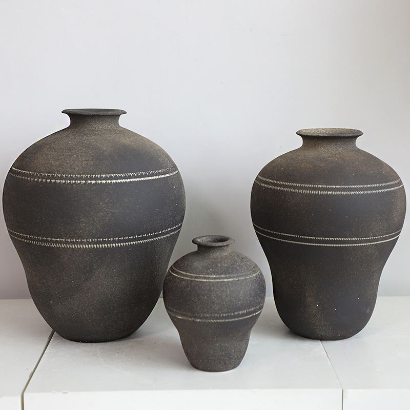 송나라 미적 다크 브라운 일본식 꽃병 Jingdezhen 세라믹 꽃병 레트로 호텔 홈스테이 꽃 안락 선 장식스토어 가기
