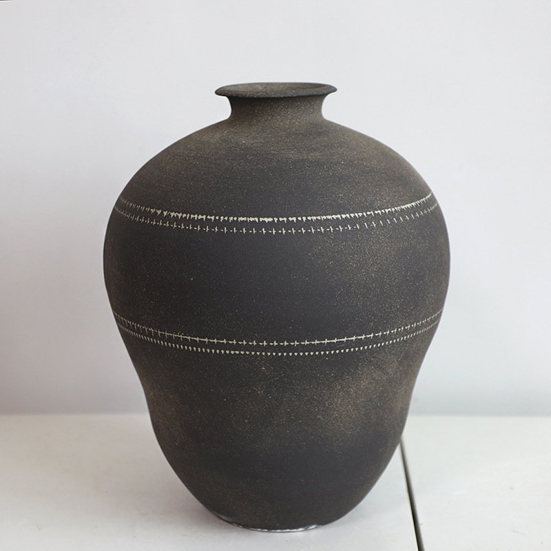 송나라 미적 다크 브라운 일본식 꽃병 Jingdezhen 세라믹 꽃병 레트로 호텔 홈스테이 꽃 안락 선 장식