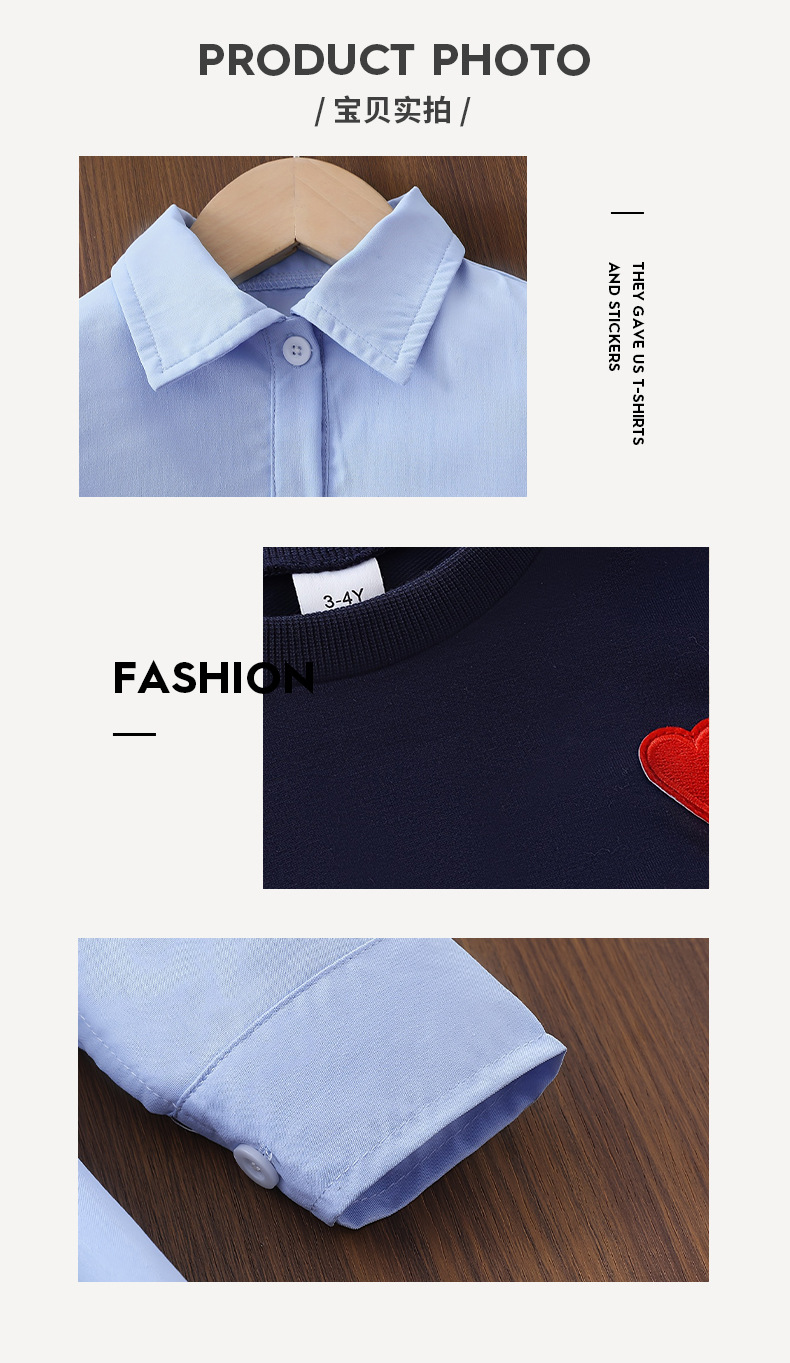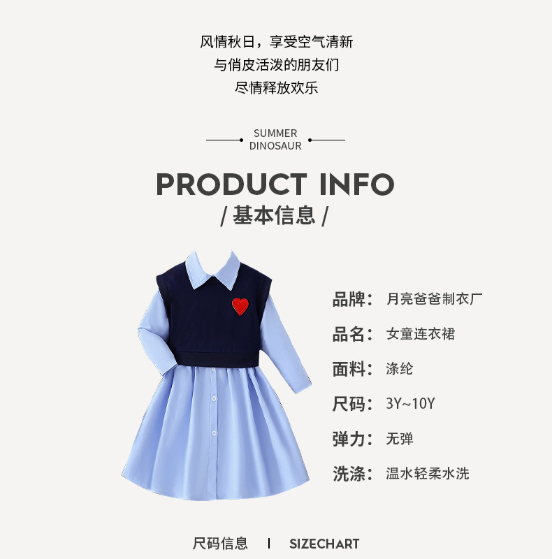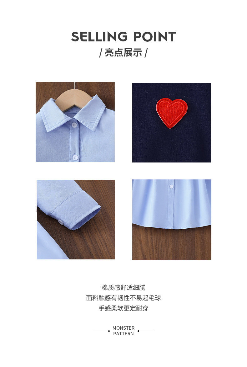 크로스보더 가을 여아 한국 스타일 스쿨룩 투피스 세트 하트 자수 니트 베스트 셔츠 카라 원피스