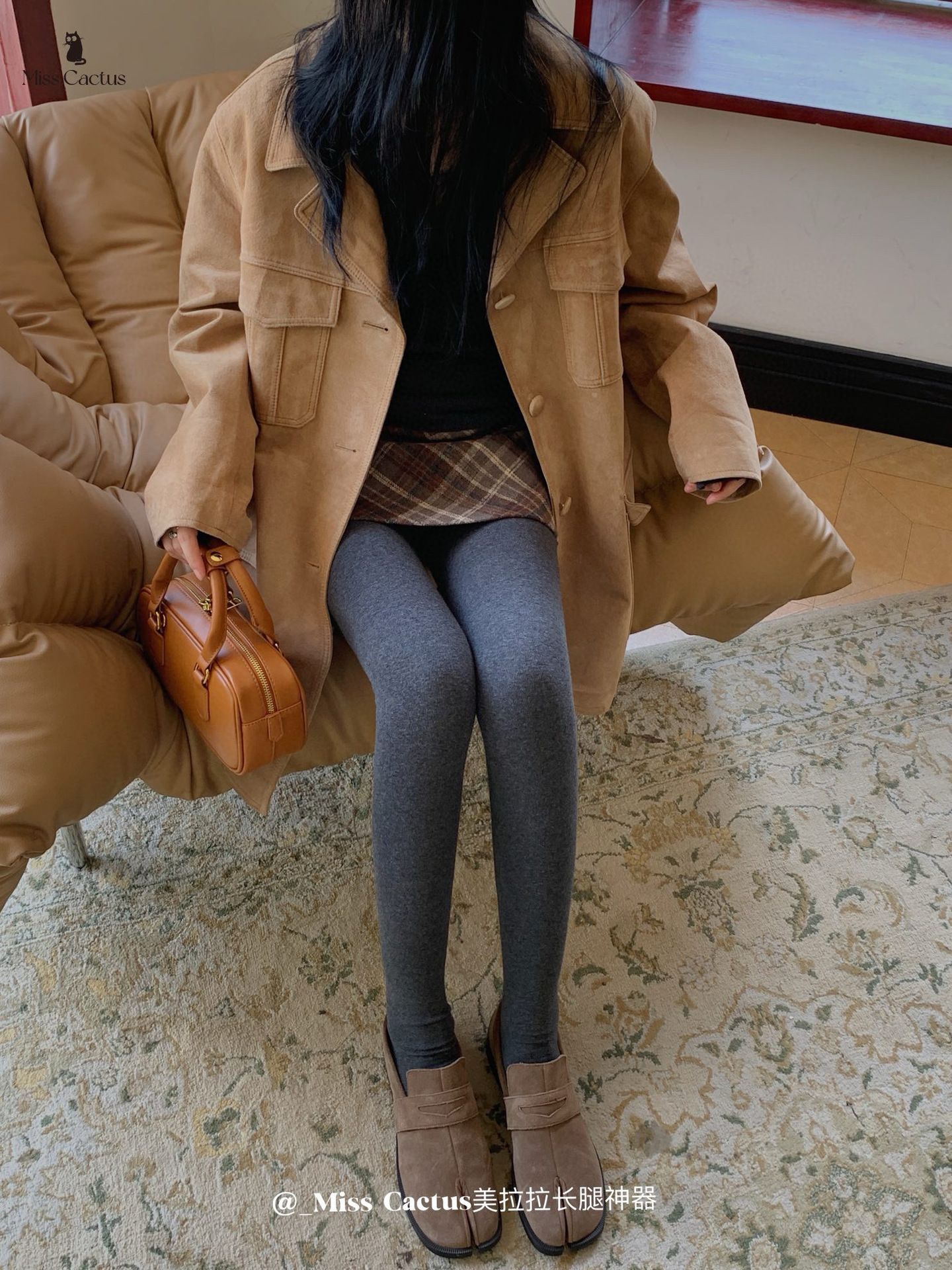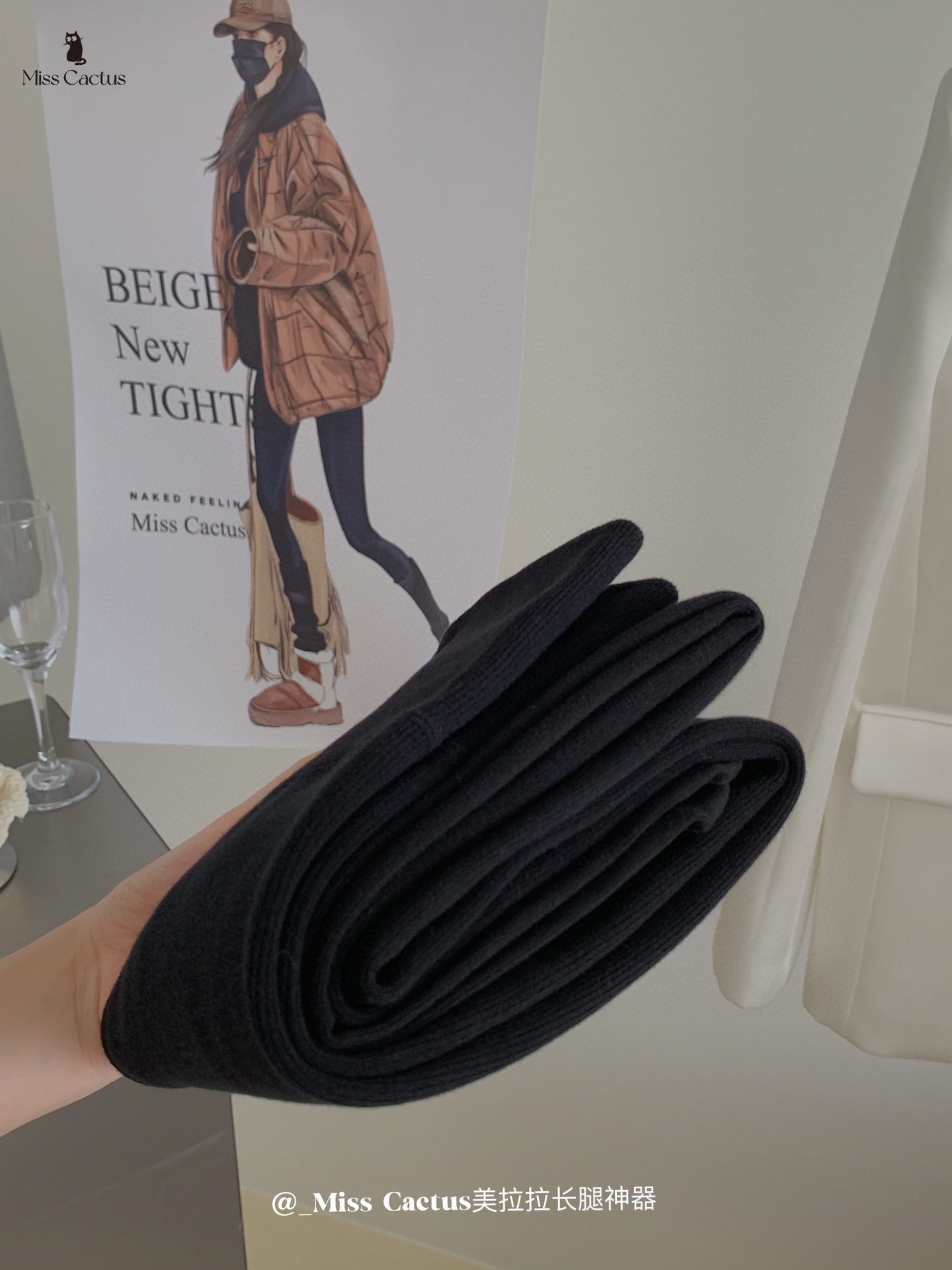 Miss Cactus Melara 긴 다리 인공물 세로 줄무늬 질감 슬리밍 팬티 스타킹 엉덩이 리프팅 하이 웨이스트 레깅스