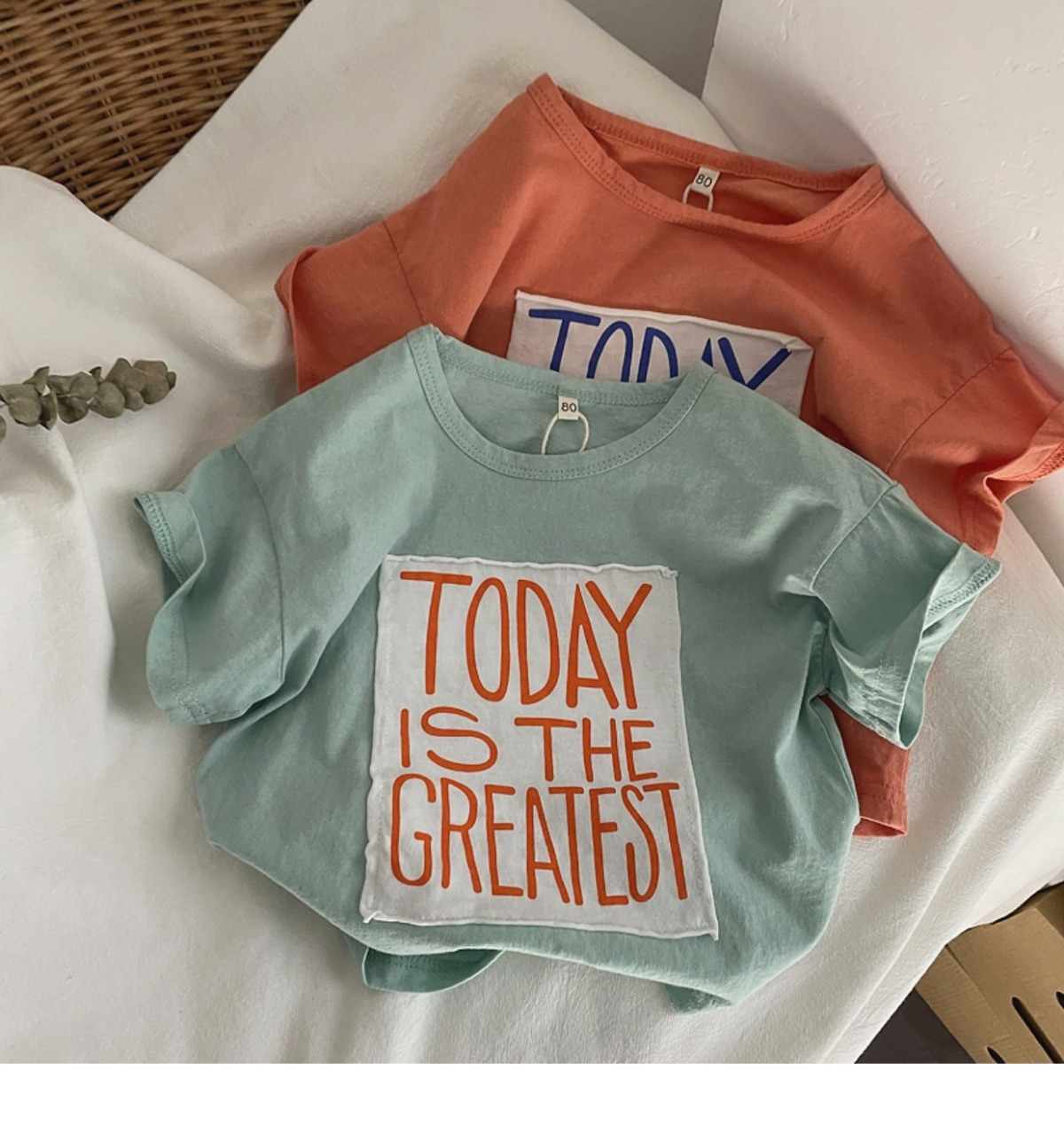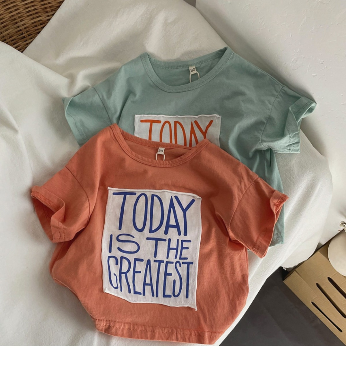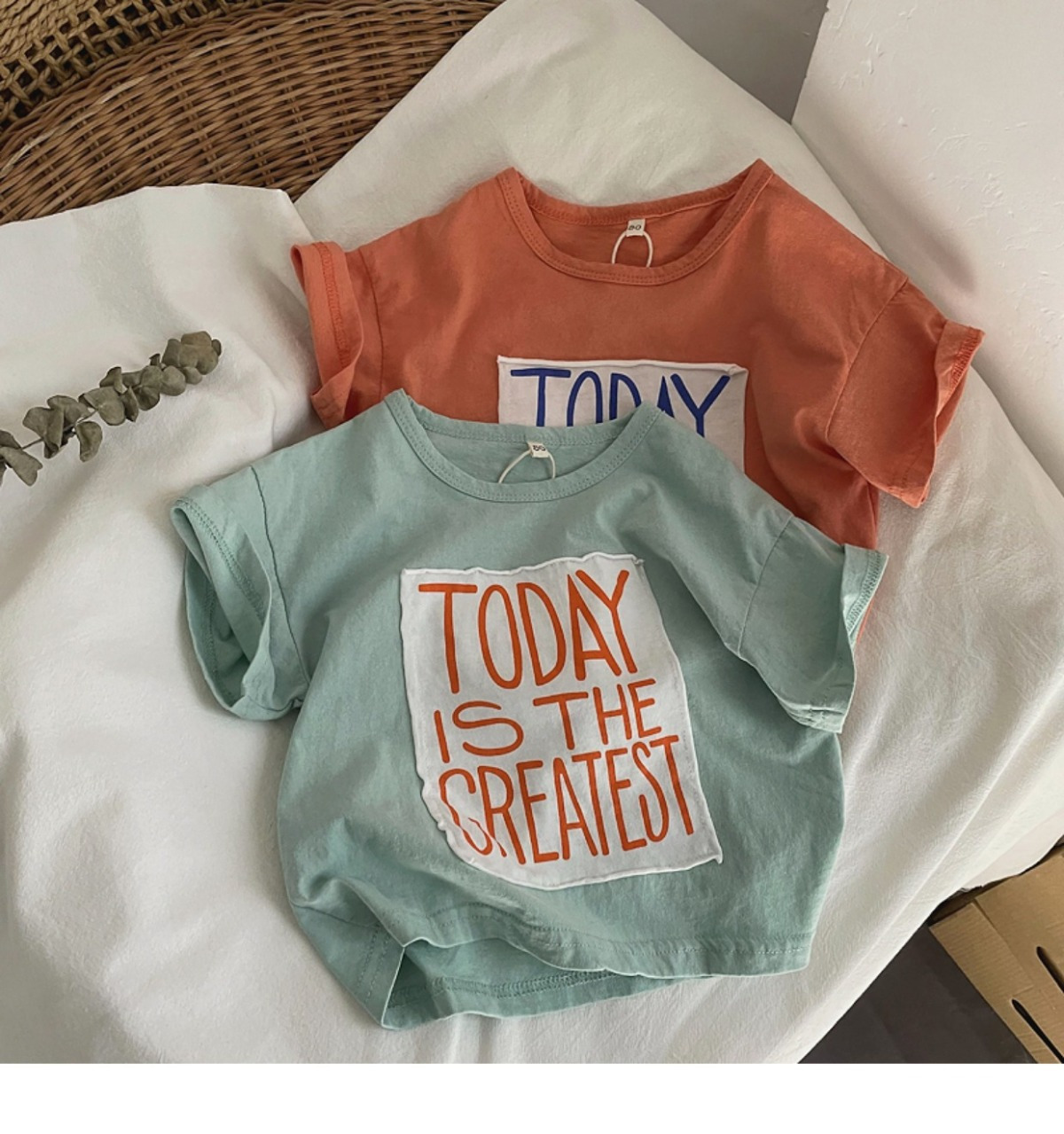 남학생과 여학생 여름 반팔 티셔츠 아기 외국식 어린이 맞춤형 패션 브랜드 대외 무역 INS 편지 패치 유행 반팔