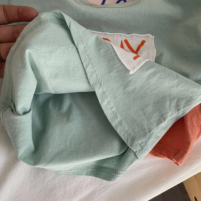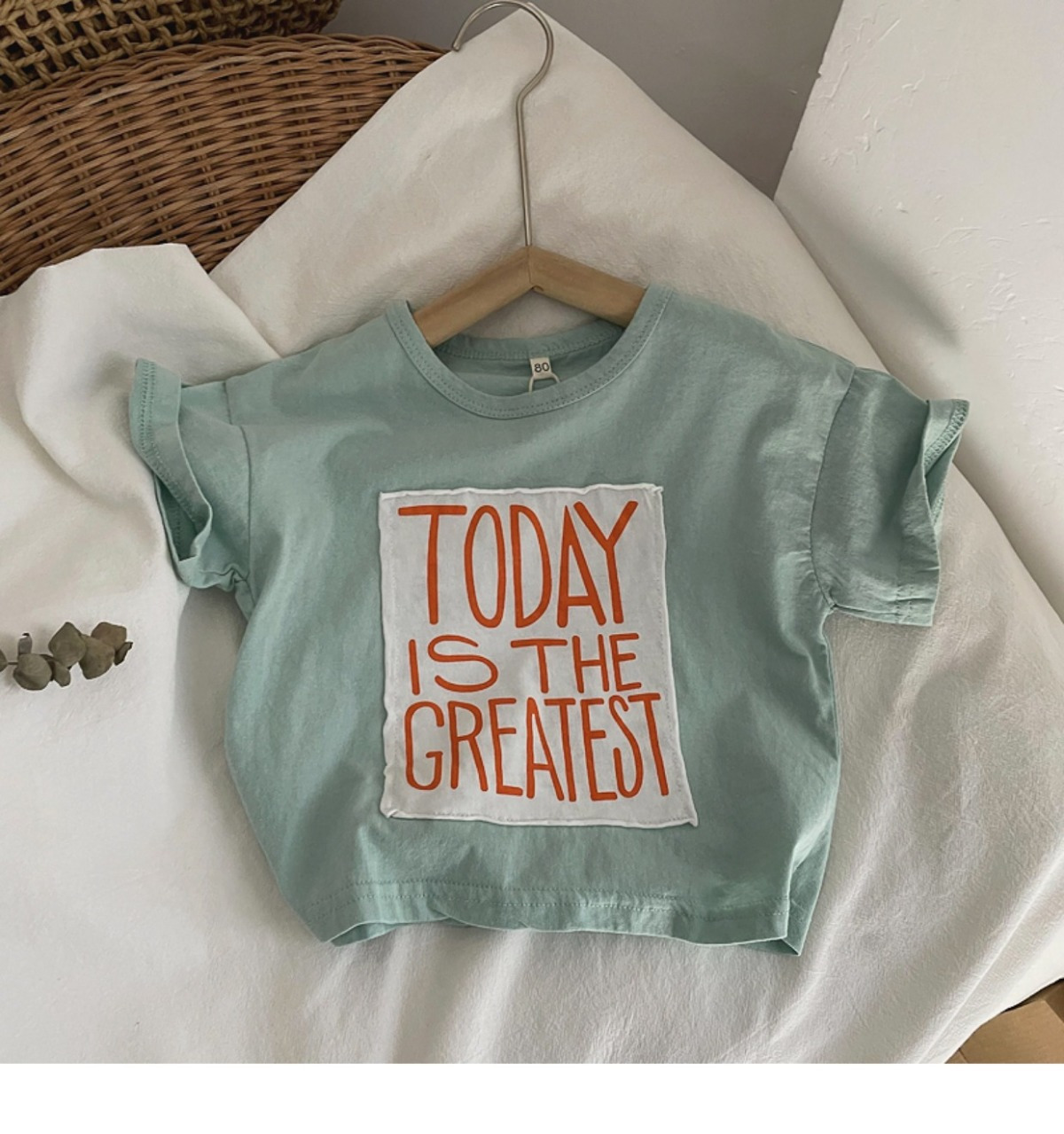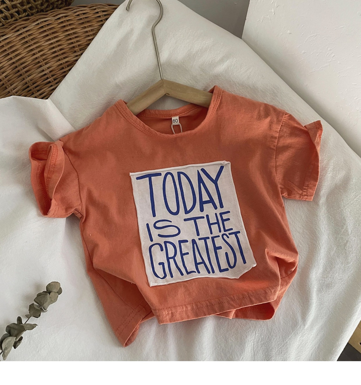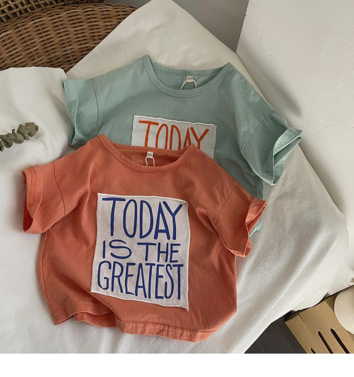 남학생과 여학생 여름 반팔 티셔츠 아기 외국식 어린이 맞춤형 패션 브랜드 대외 무역 INS 편지 패치 유행 반팔