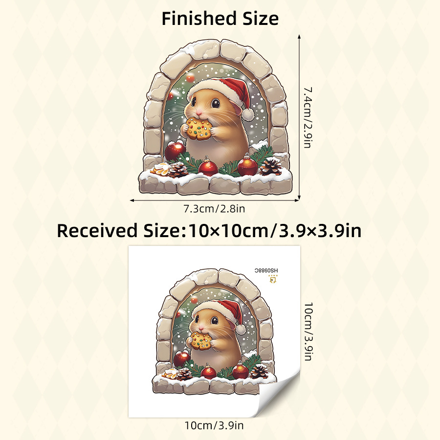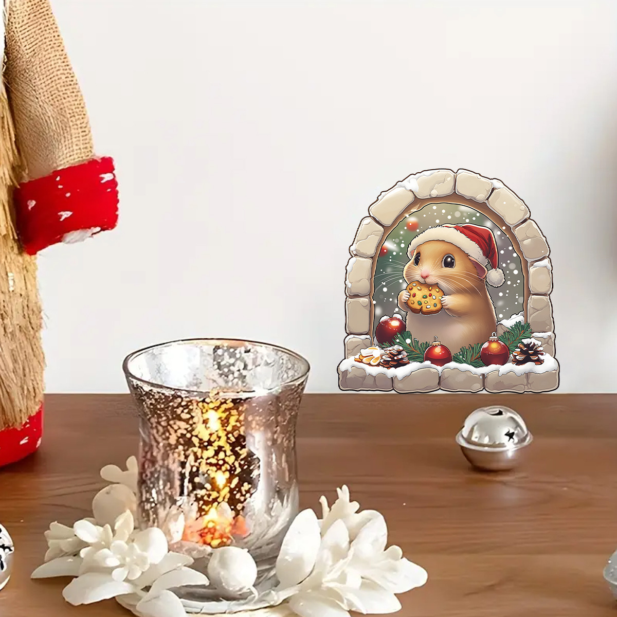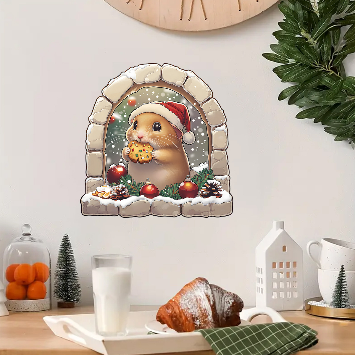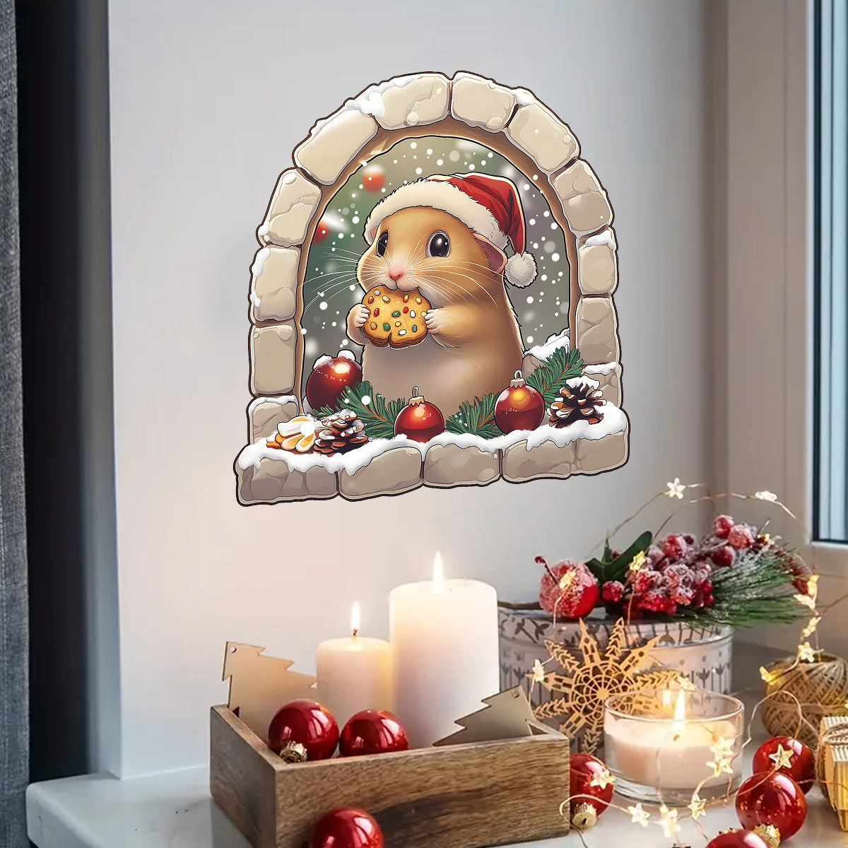 만화 귀여운 크리스마스 햄스터 자기 접착 벽 스티커 양면 시각적 유리 미화 장식 스티커 HS0988C스토어 가기