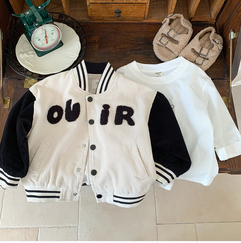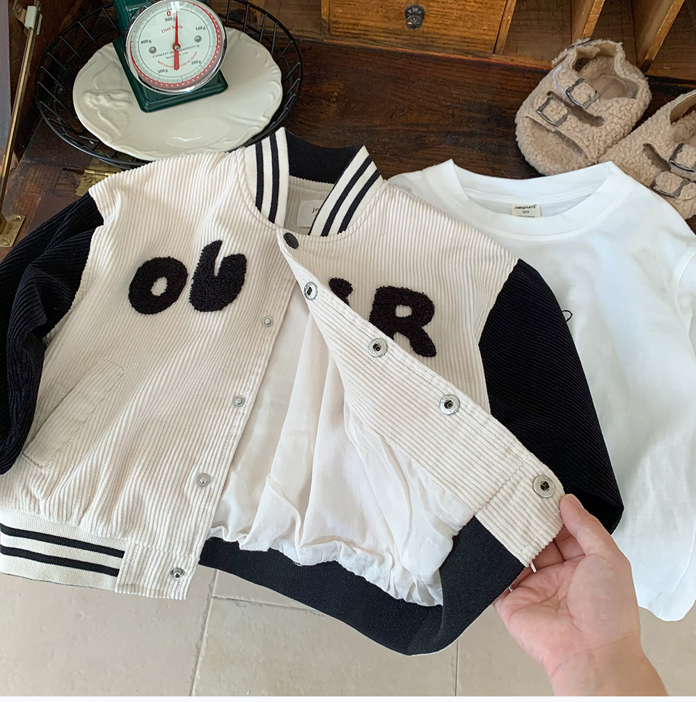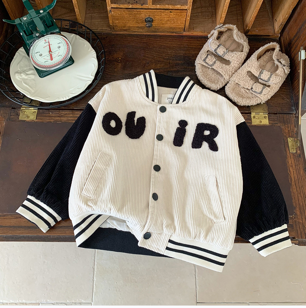소형 C 급우 2024 신작 어린이 야구 세트 한국식 봄 · 가을 스타일 중년 어린이 수직 칼라 소년 코트 트렌디스토어 가기