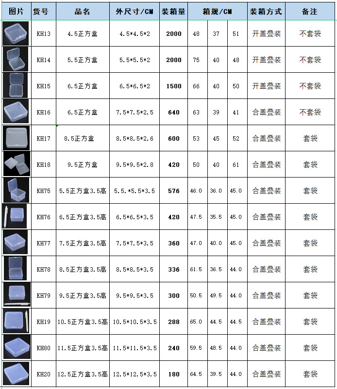 • KH20 3.5 높이 12.5 정사각형 상자/외경: 12.5*12.5*3.5cm/상자당 180개