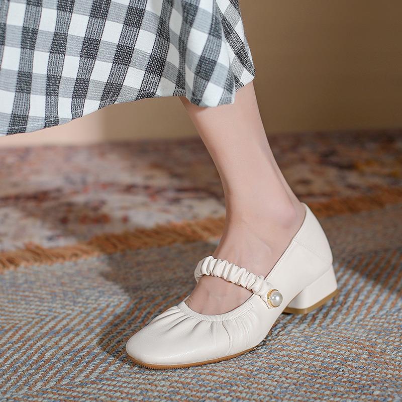 부드러운 게으른 신발 봄과 가을 착용 신발 여성 올매치 슬립 온 청키 힐 원피스 가죽 여성 신발 스퀘어 헤드 영국 스타일 데일리
